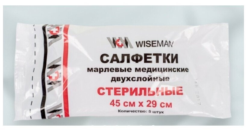 Салфетка марлевая Ньюфарм стерильная 45х29 см 2-слойная плотность 32 г, 5 штук в упаковке (5 шт.)