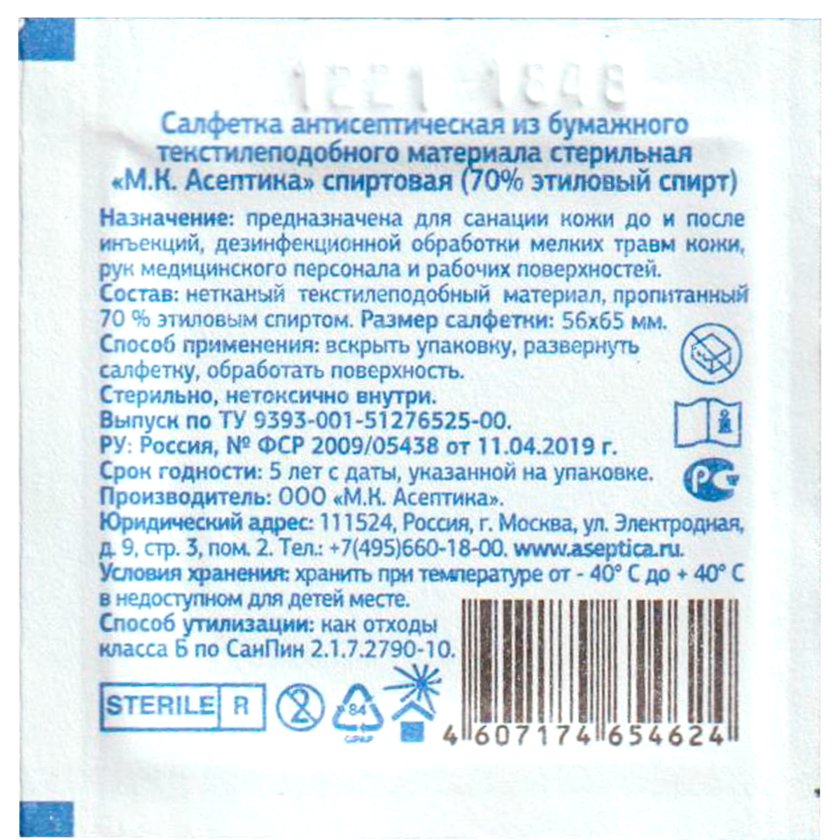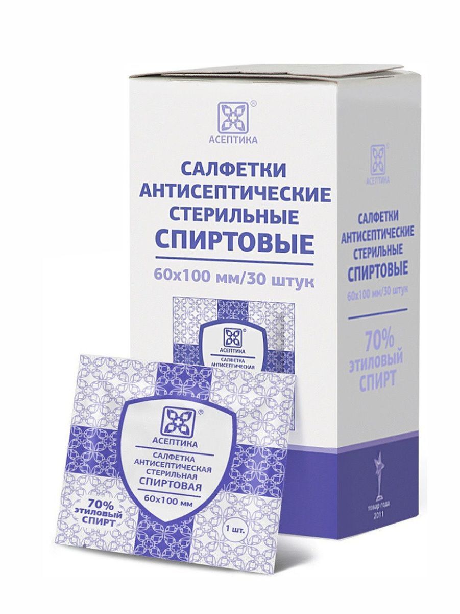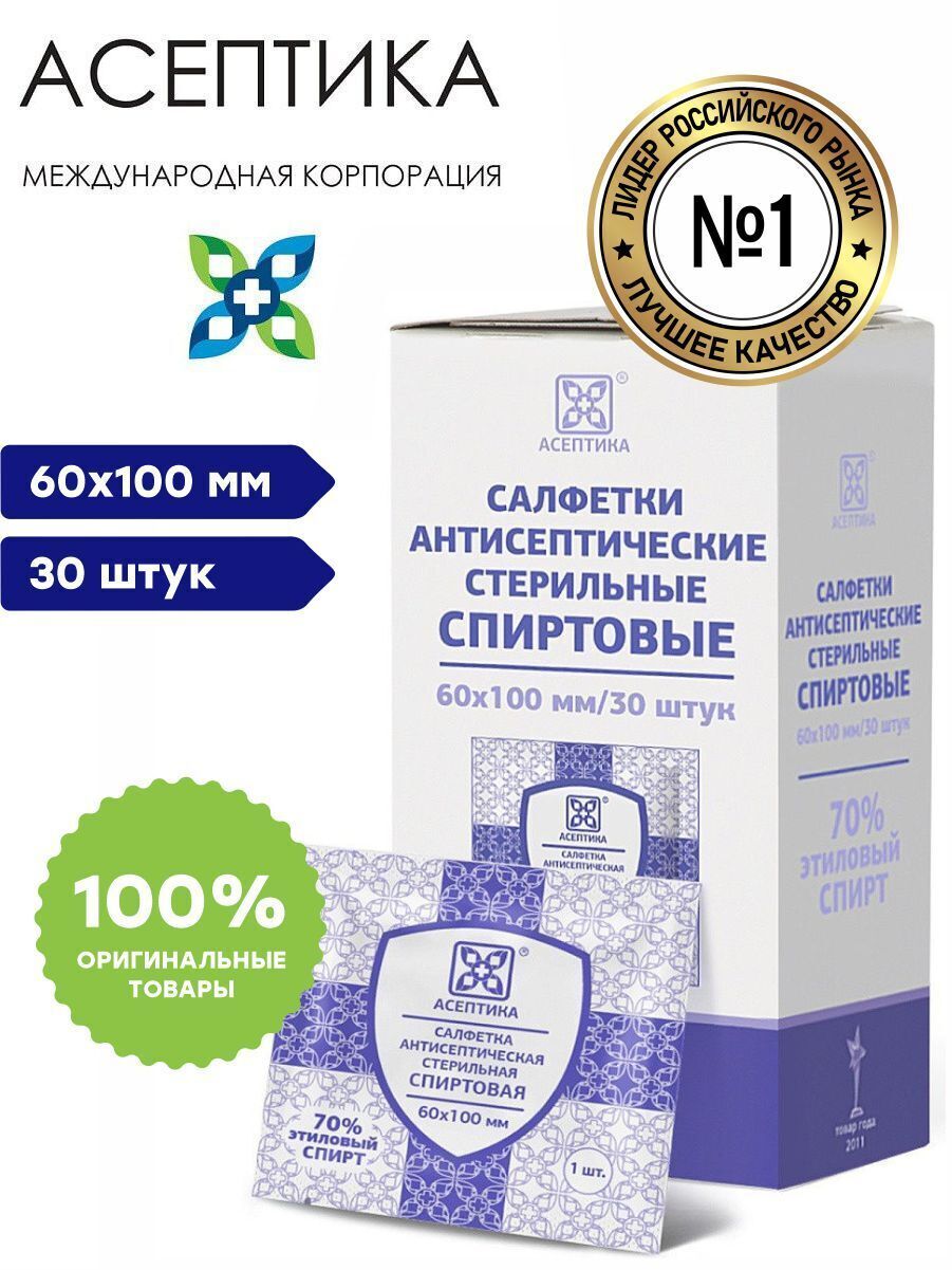 Спиртовые салфетки 100шт 60х100мм Асептика медицинские антисептические