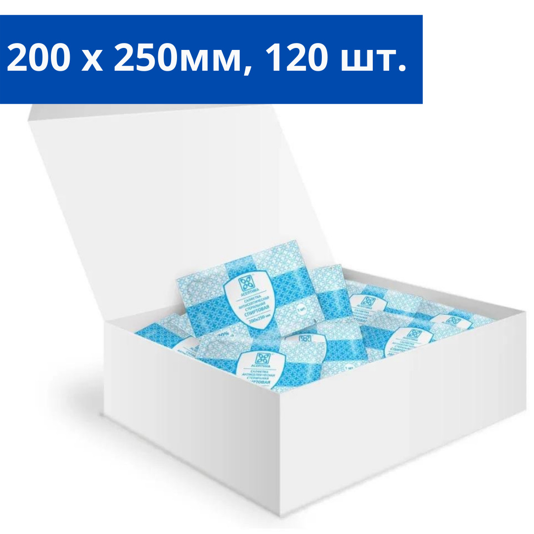 Салфетки антисептические стерильные спиртовые Асептика 200 штук (Размер 85 х 110 мм.) саше