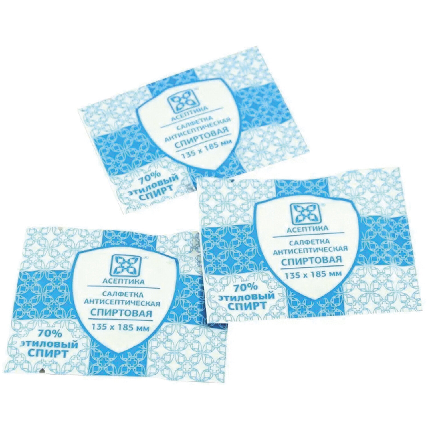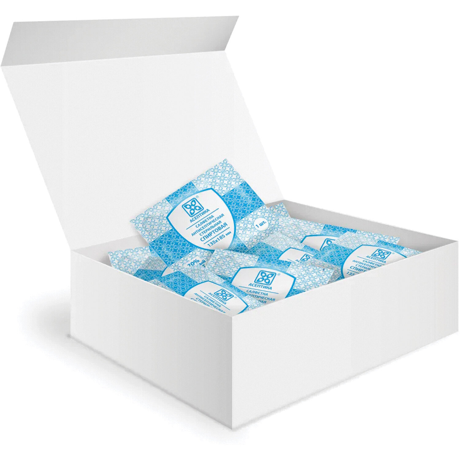 Салфетки антисептические стерильные спиртовые Асептика 60 штук (Размер 185 х 200 мм.) саше