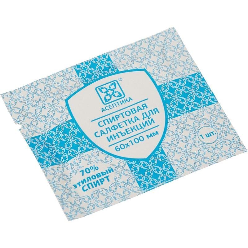 Асептика Салфетки антисептические спиртовые (пропитаны 70% этиловым спиртом), 60х100мм-200шт.