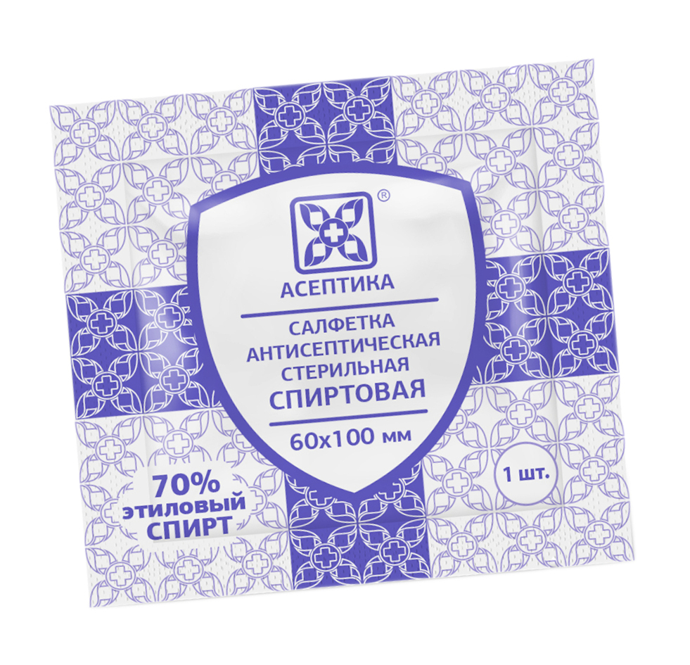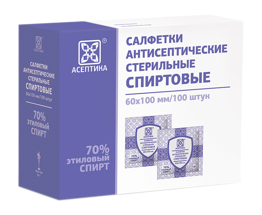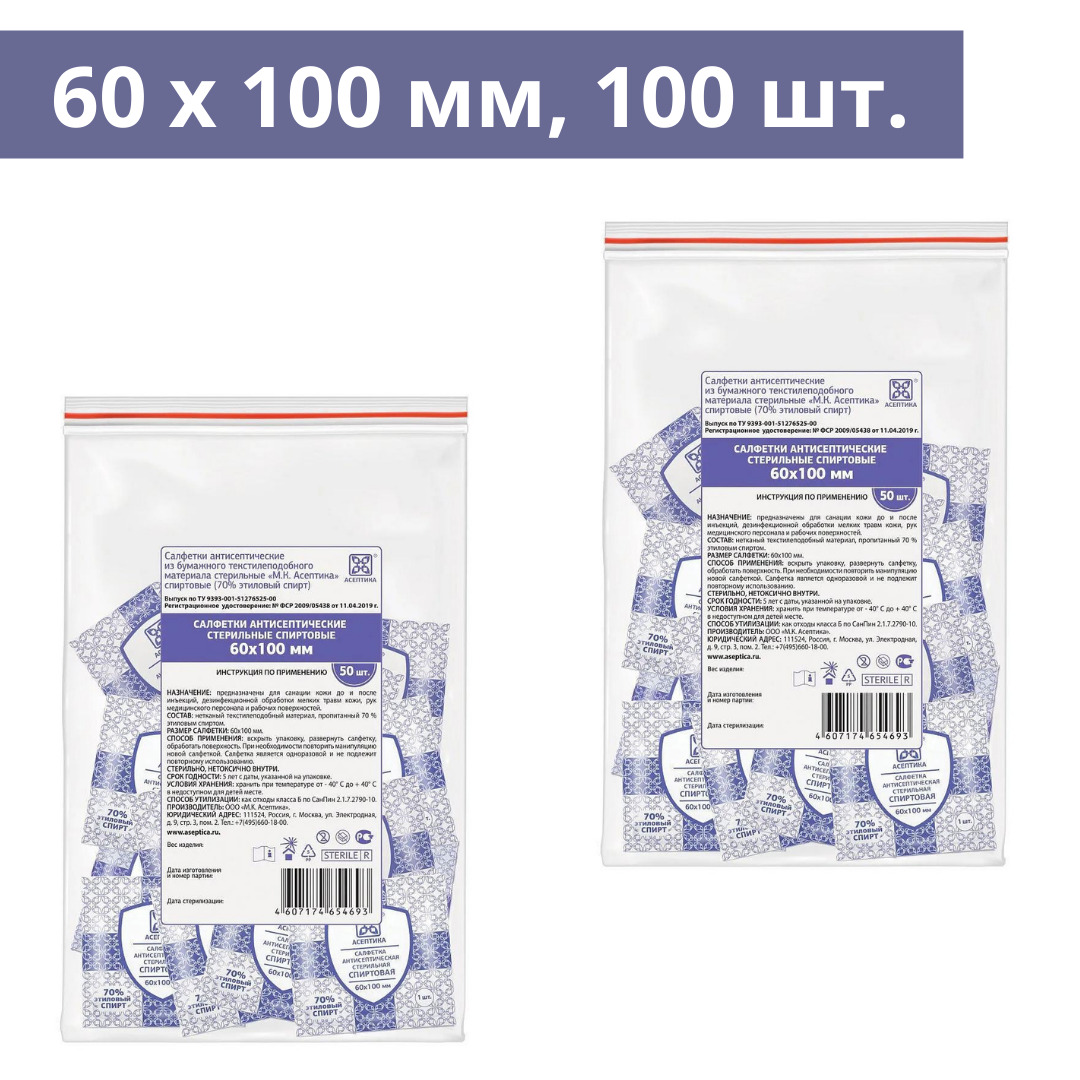 Салфетки антисептические спиртовые 60 х 100 мм Асептика, 100 штук