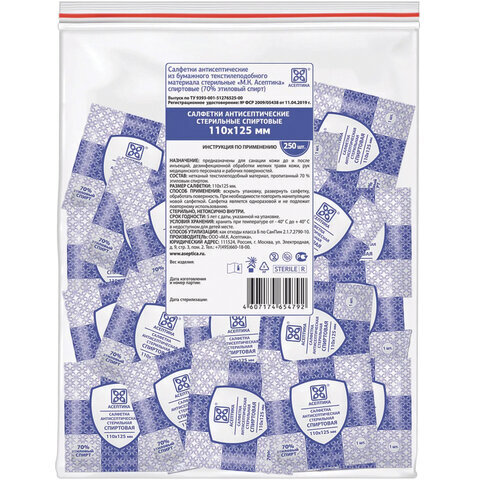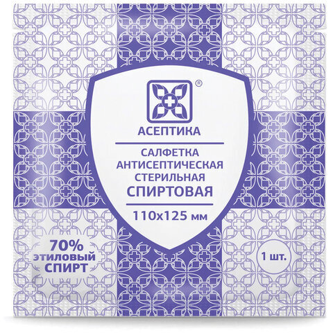 Спиртовые салфетки антисептические 110x125 мм КОМПЛЕКТ 250 шт., АСЕПТИКА, 1уп
