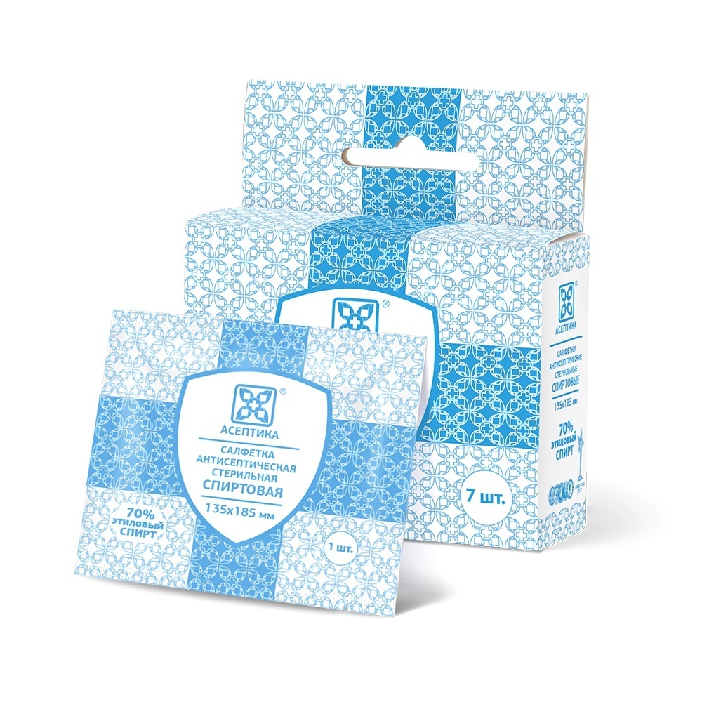 Салфетки антисептические стерильные спиртовые Асептика 7 штук (Размер 135 х 185 мм.) саше