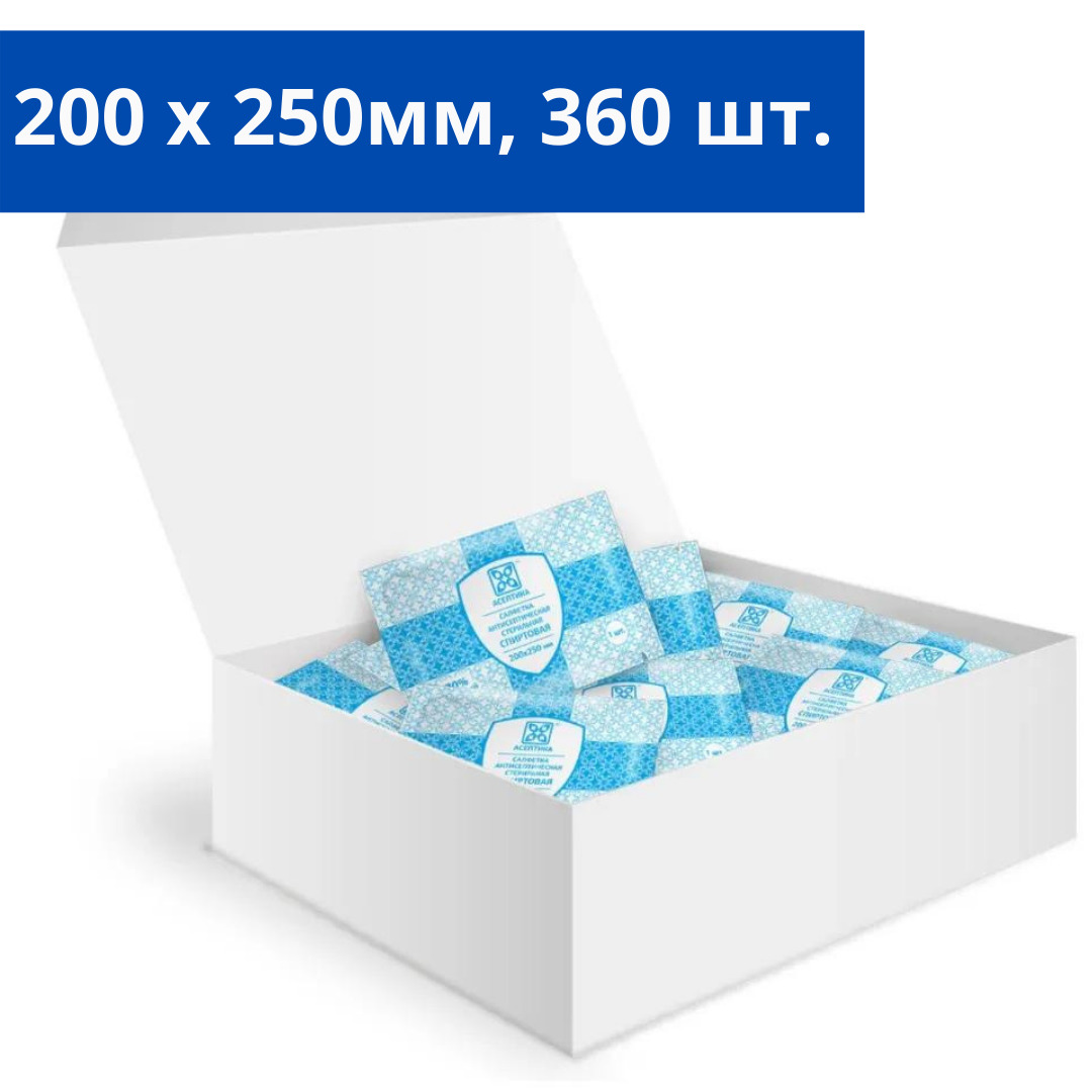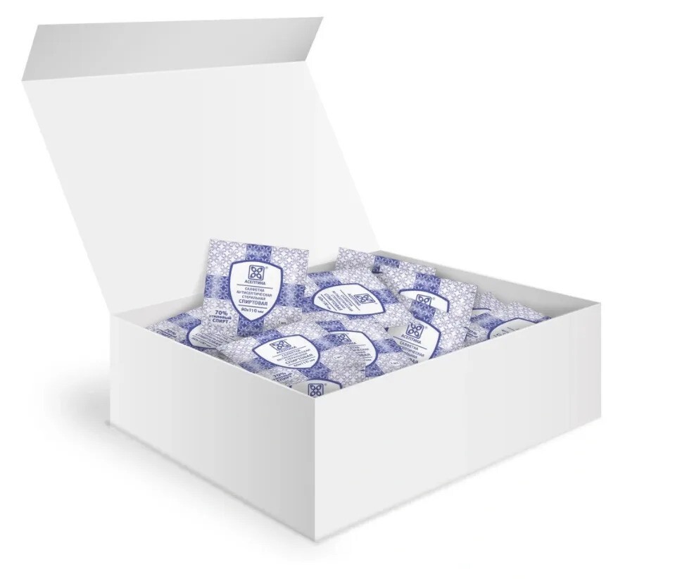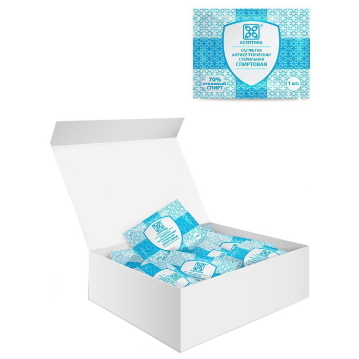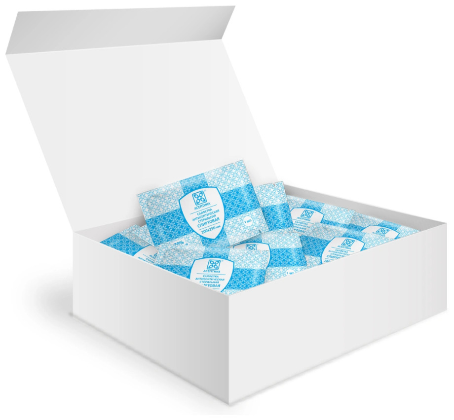 Салфетки антисептические стерильные спиртовые Асептика 800 штук (Размер 56 х 65 мм.)