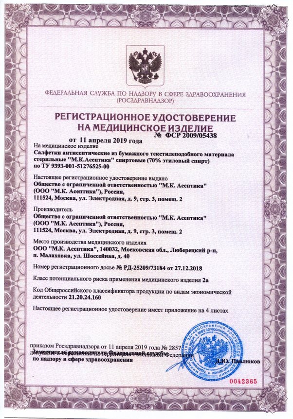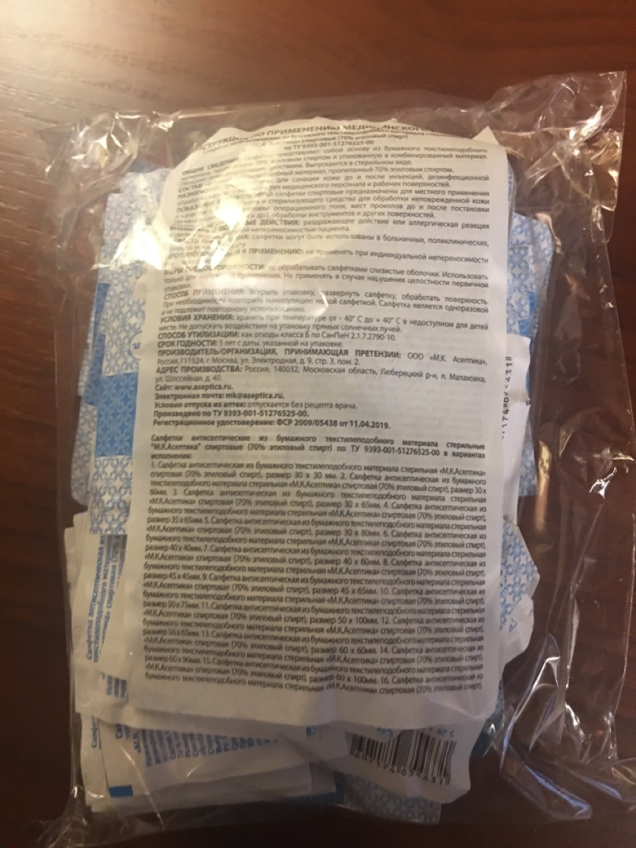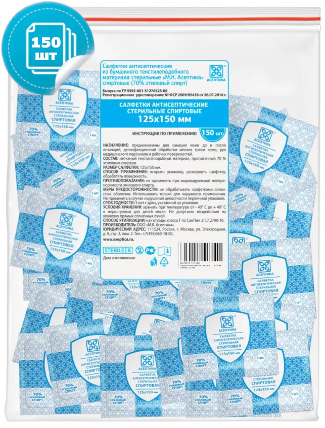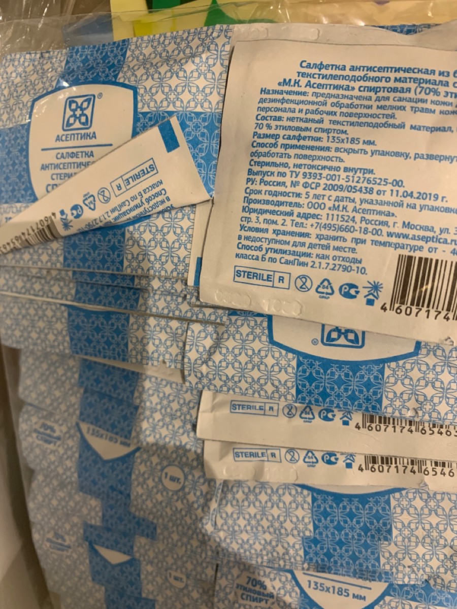 Салфетки антисептические стерильные спиртовые Асептика 800 штук (Размер 56 х 65 мм.)