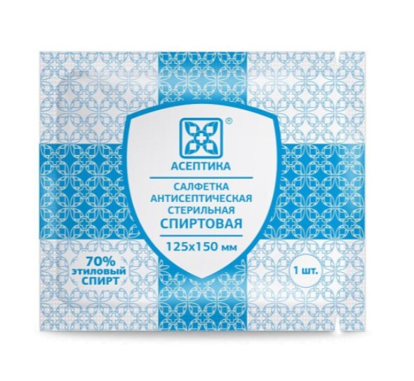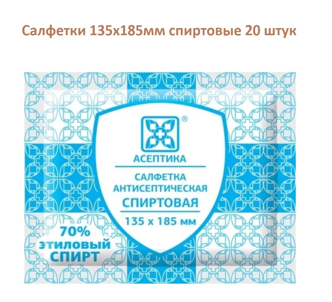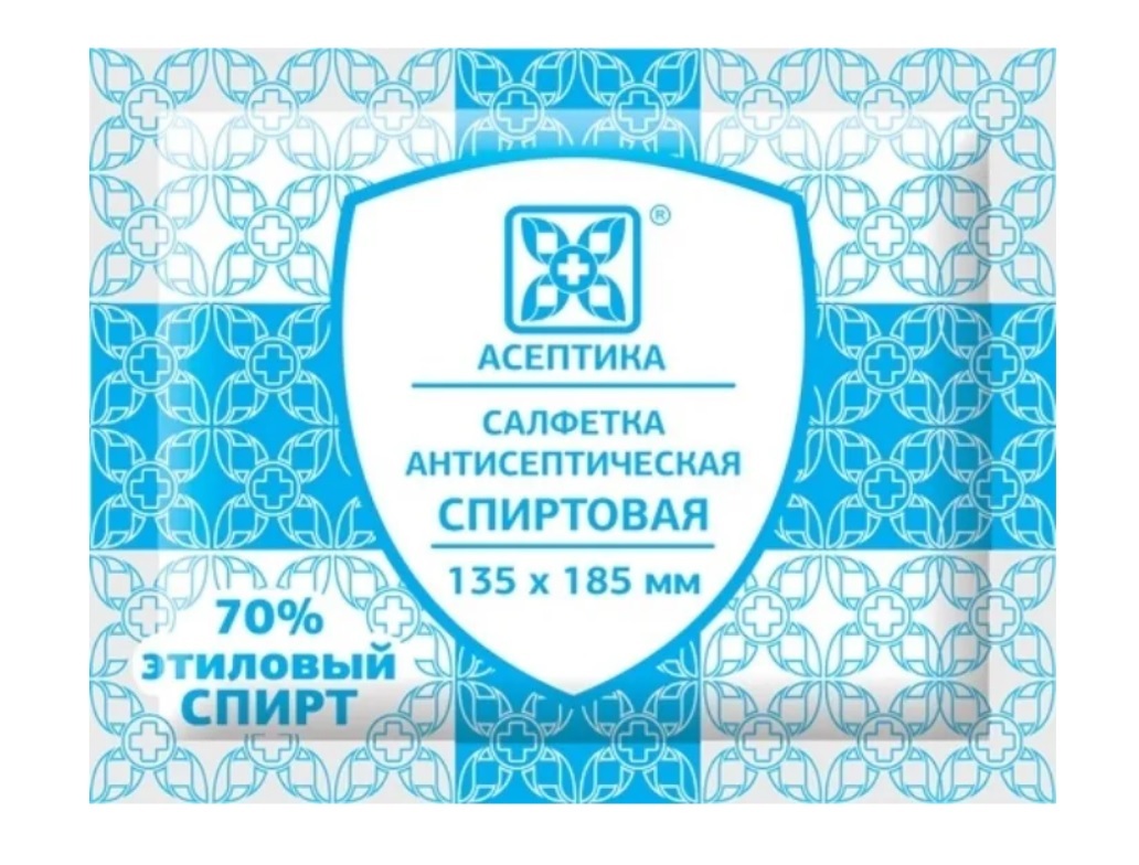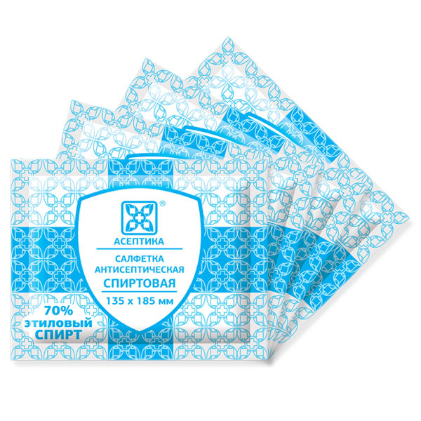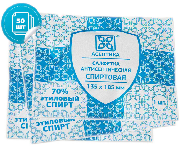 Салфетки антисептические спиртовые 135 х 185 мм Асептика. Пакет 50 штук