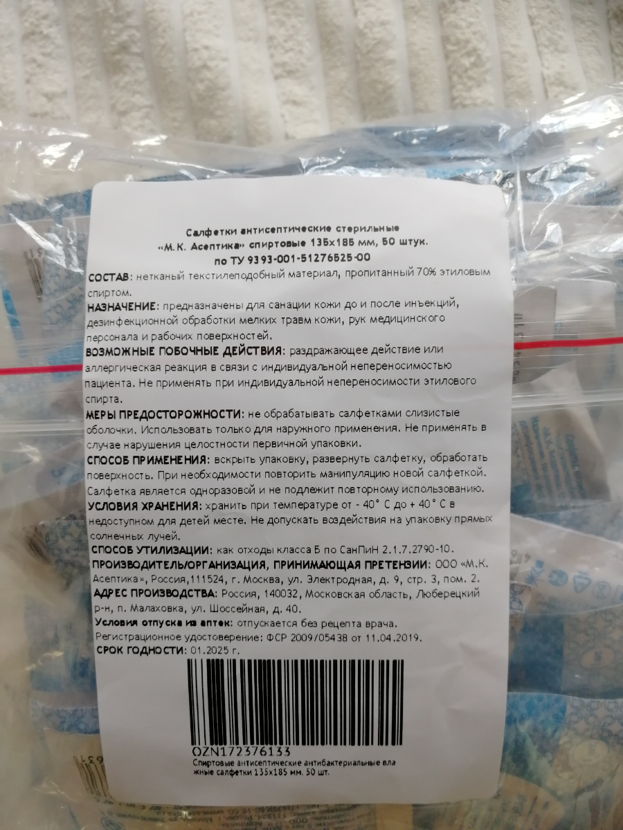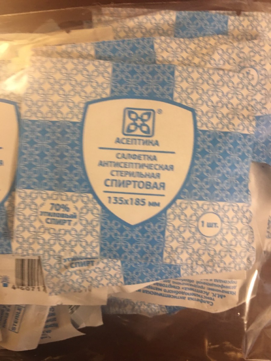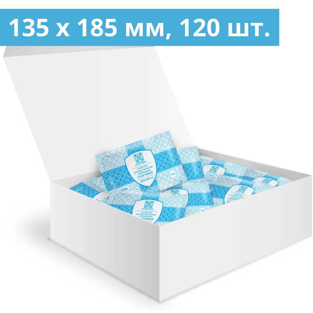 Салфетки антисептические спиртовые 135 х 185 мм Асептика. Пакет 50 штук