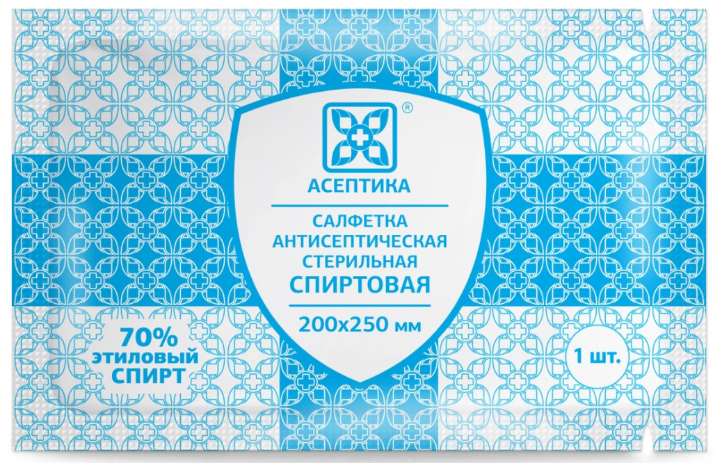 Салфетки антисептические стерильные спиртовые Асептика 200 штук (Размер 85 х 110 мм.) саше