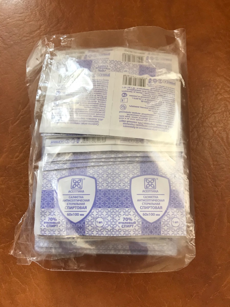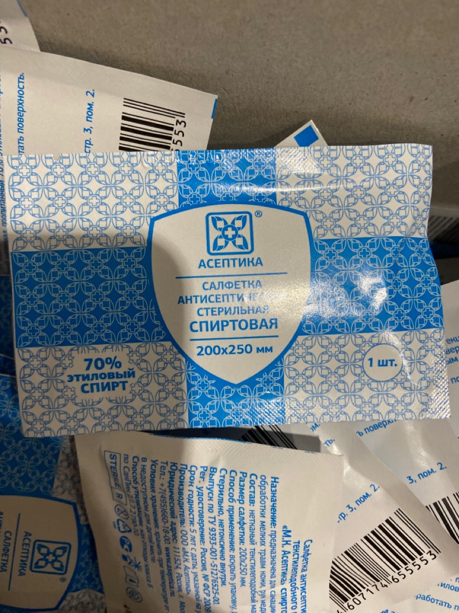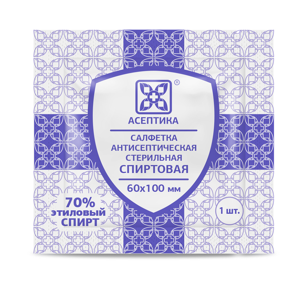Асептика Салфетки антисептические спиртовые (пропитаны 70% этиловым спиртом), 60х100мм-400шт.