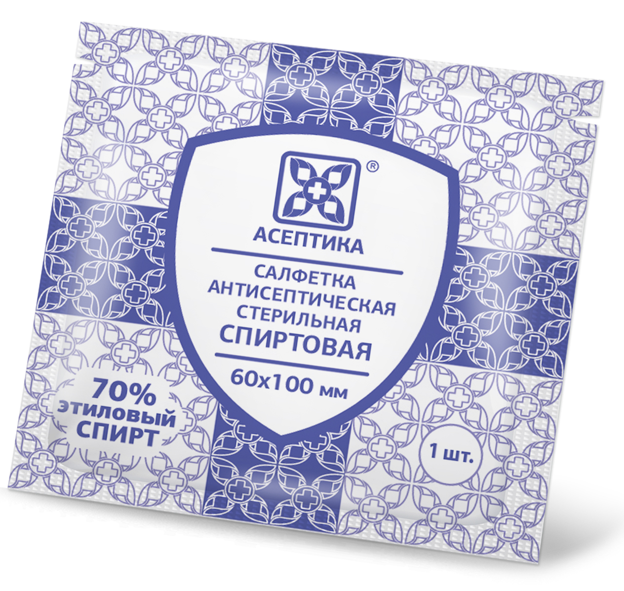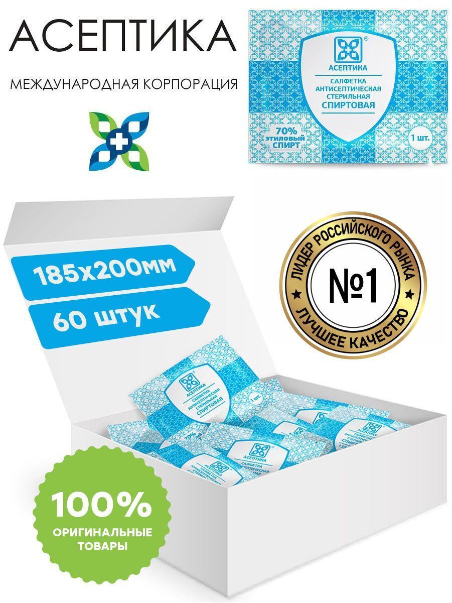 Салфетки антисептические стерильные спиртовые Асептика 60 штук (Размер 185 х 200 мм.) саше