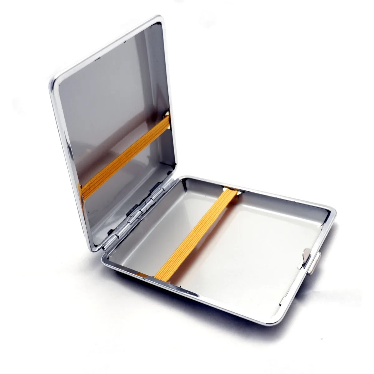 Портсигар металлический с отделкой искусственной кожей на 20 сигарет.