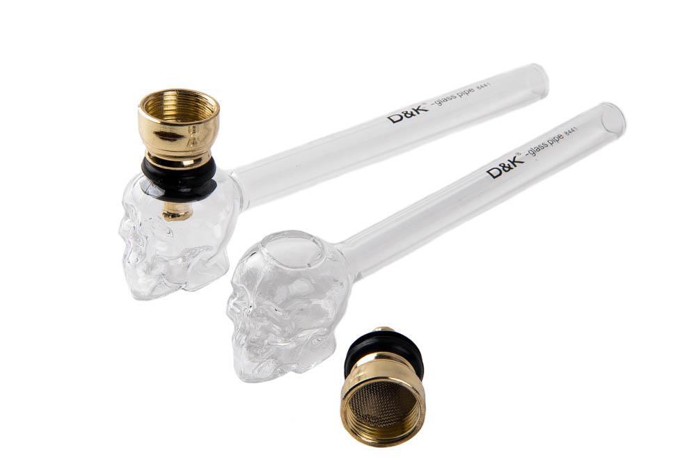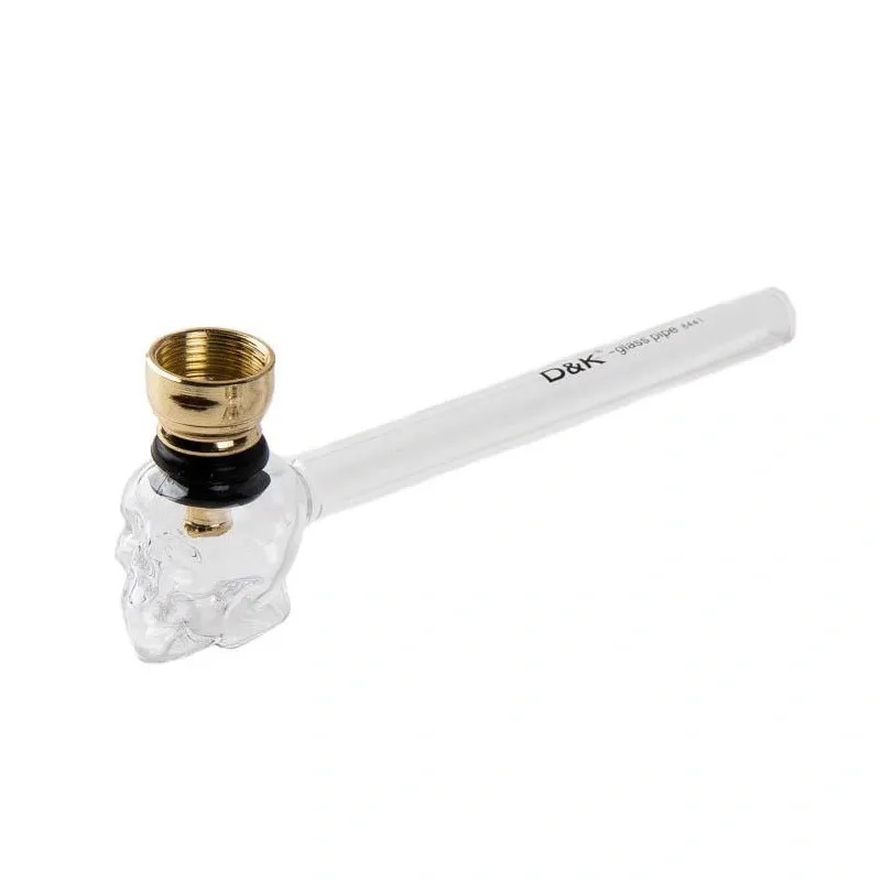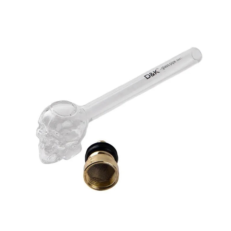 Трубка для курения стеклянная с сеточкой "Череп" 13 см + подарок 10 сеточек