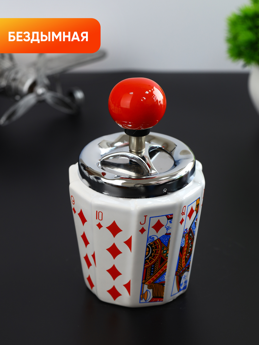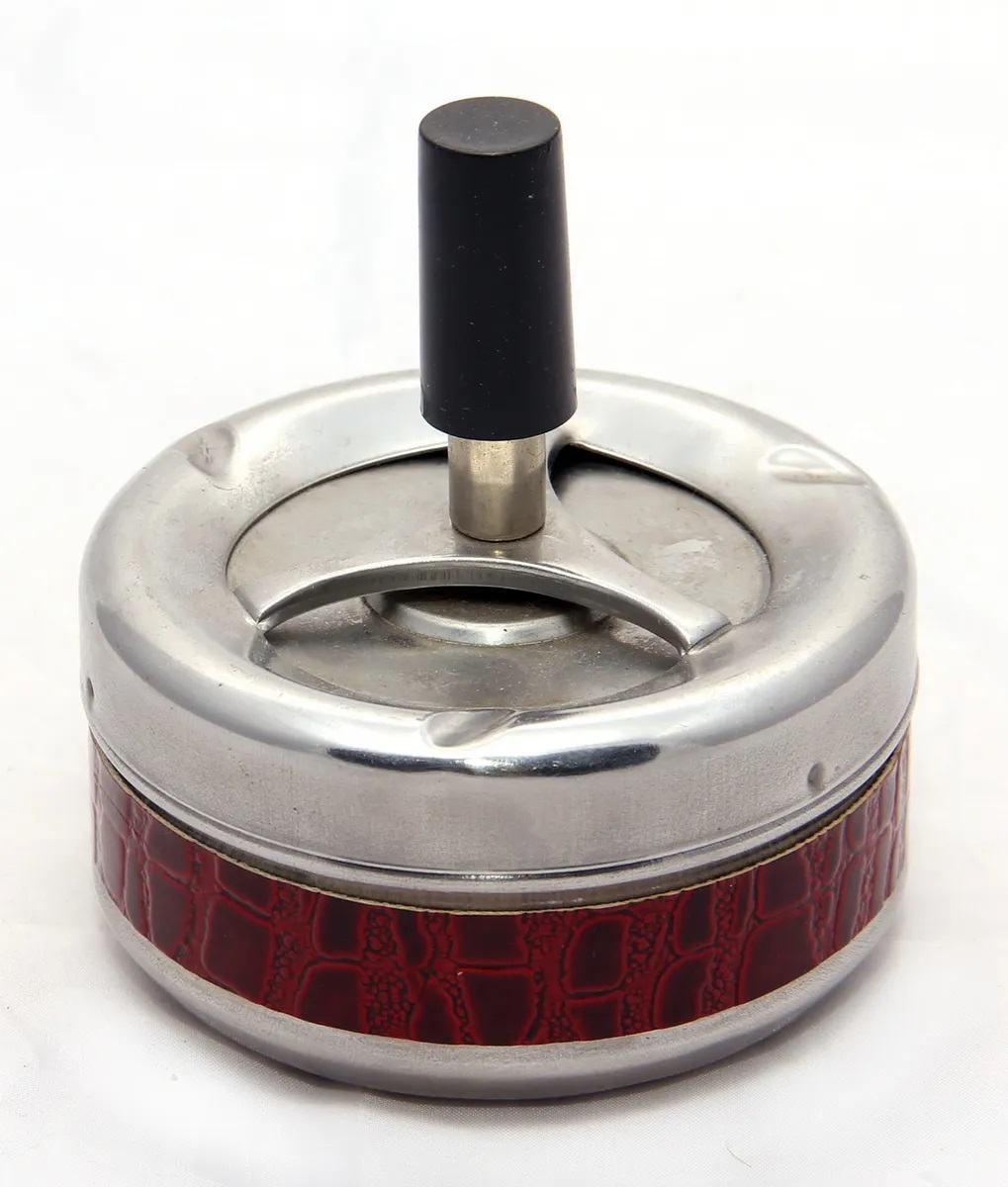 Пепельница-юла круглая бездымная ( кожаная плоска ) высота 9 см