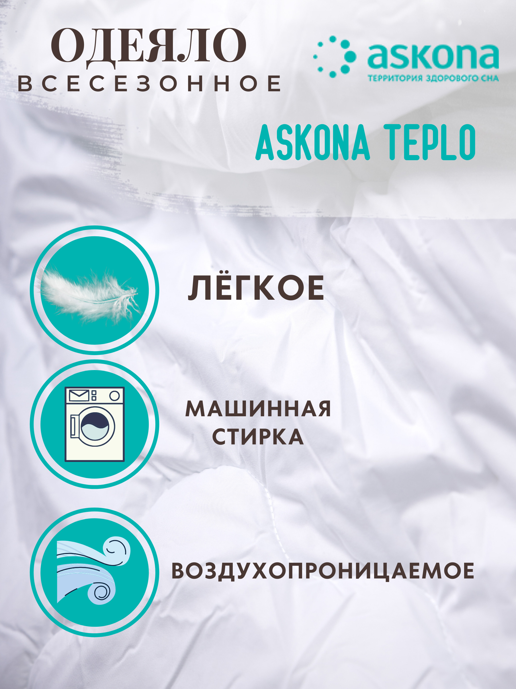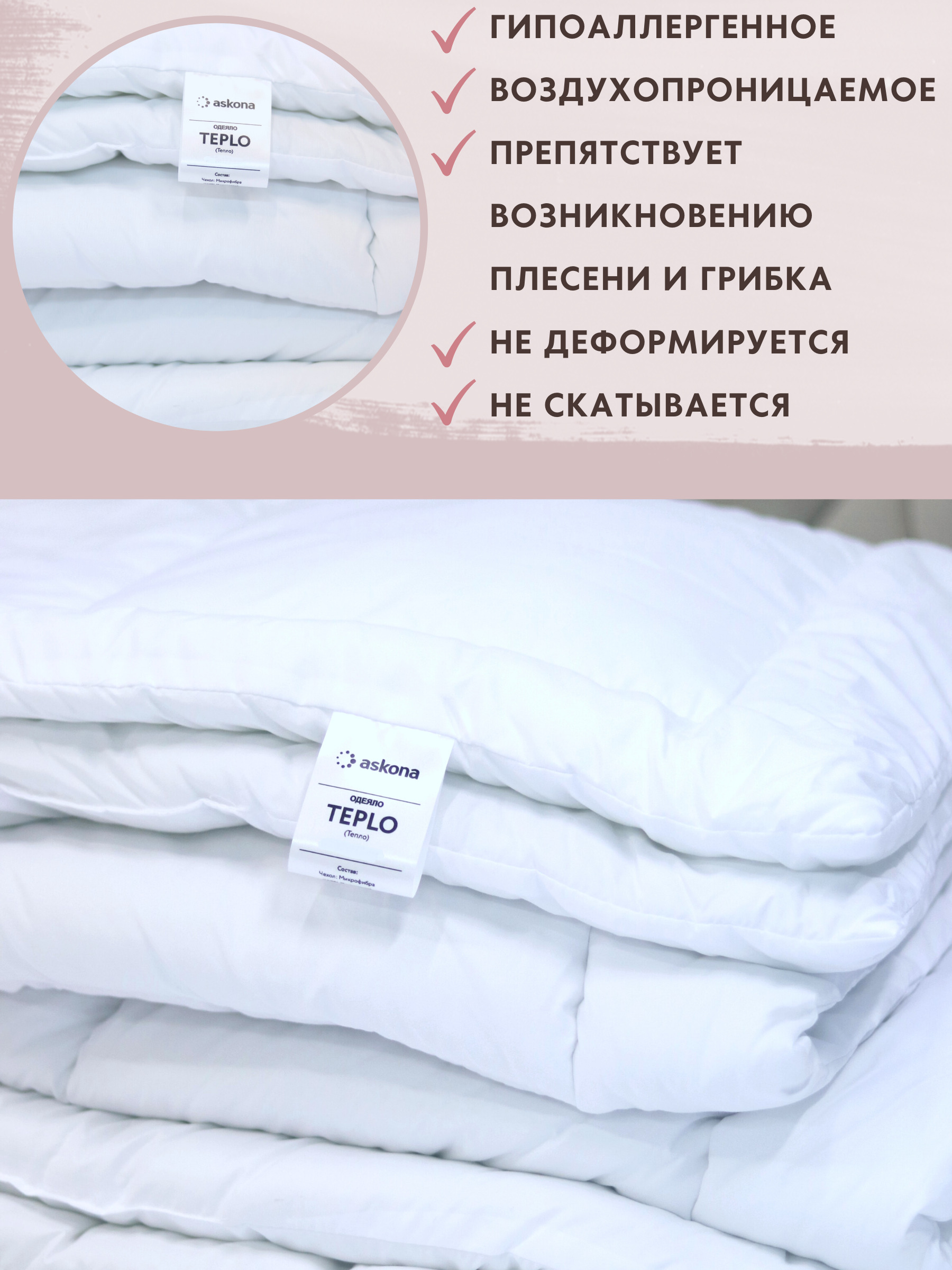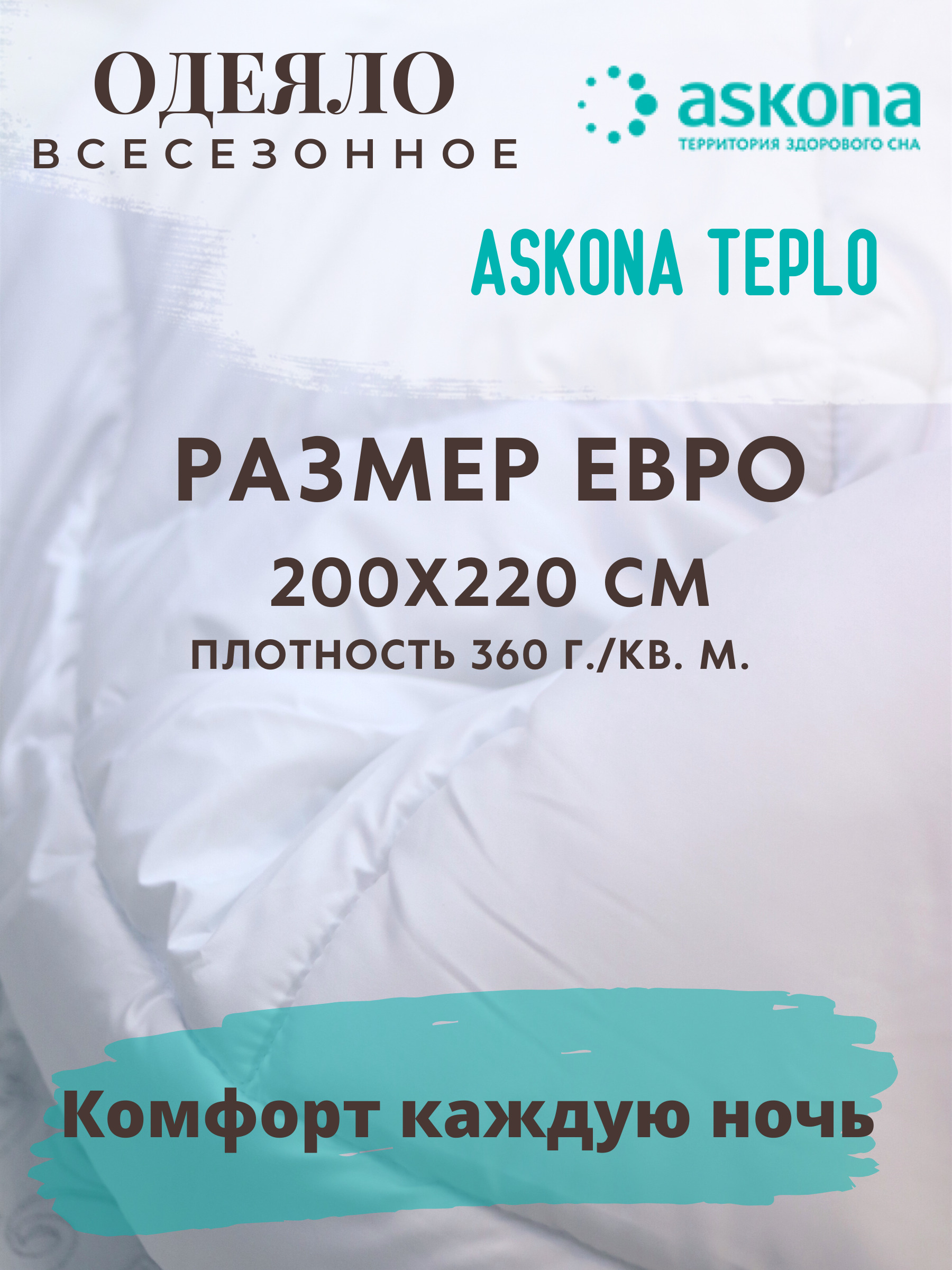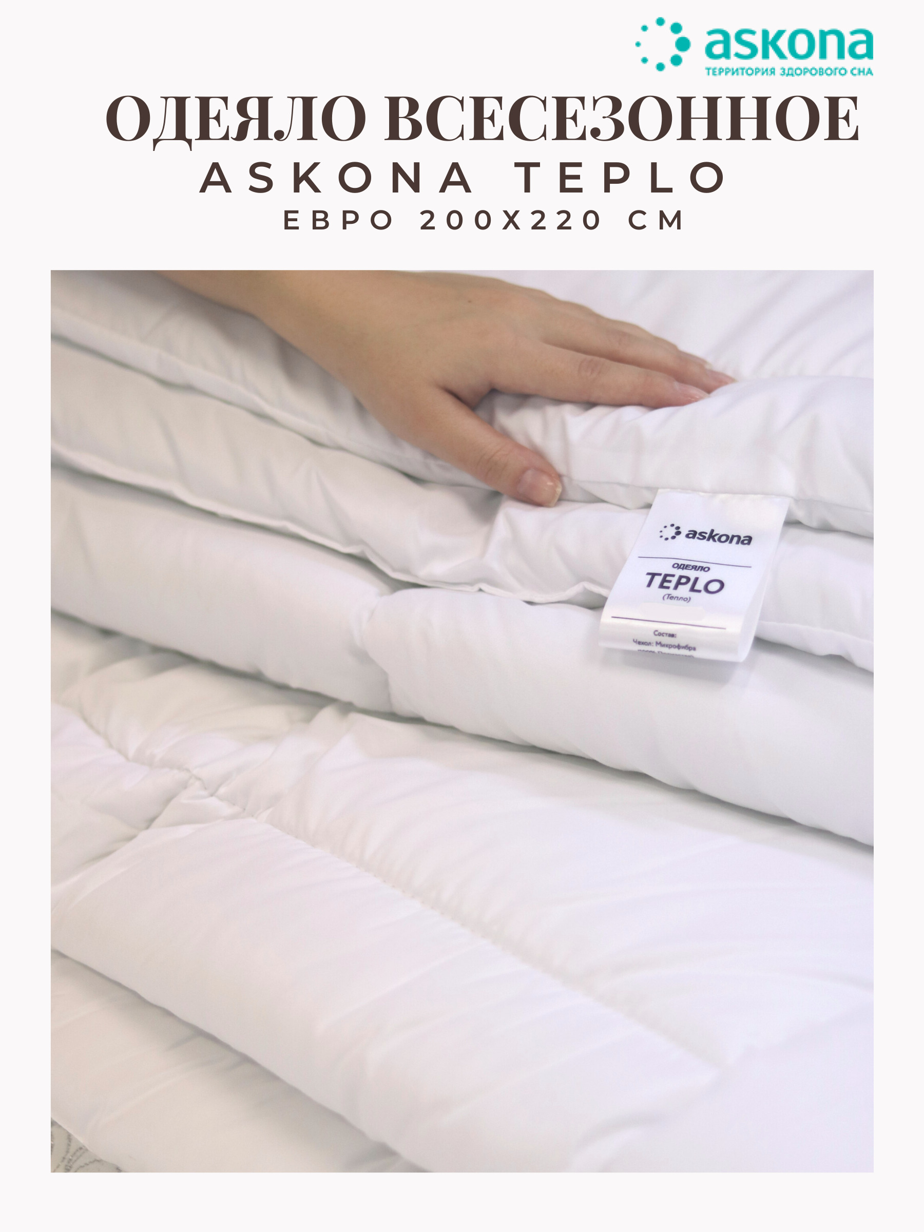 Одеяло всесезонное Аскона Тепло Одеяло евро 200х220 всесезонное наполнитель Холлотек Люкс