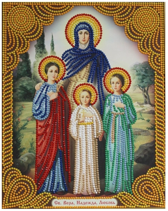 Алмазная мозаика на подрамнике Икона Вера, Надежда, Любовь 27х33 см (картина стразами) (AS72611)