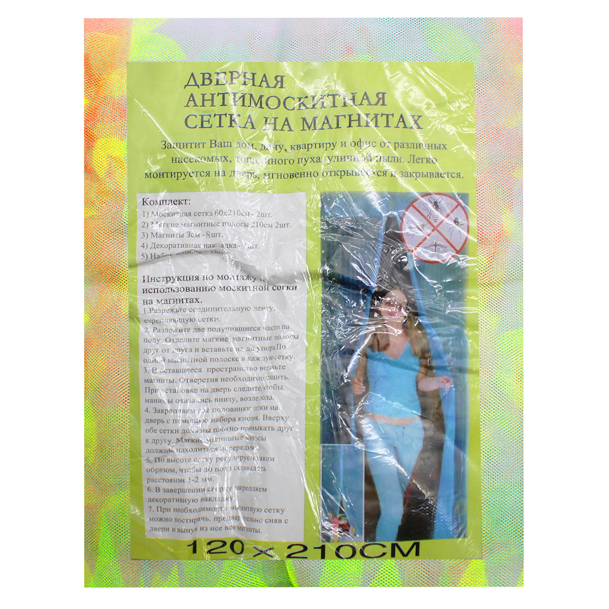 Москитная Сетка 120х210 см на окно и дверь 7 магнитов Mosquito Netting Защита от насекомых с рисунком Светлый Зеленый