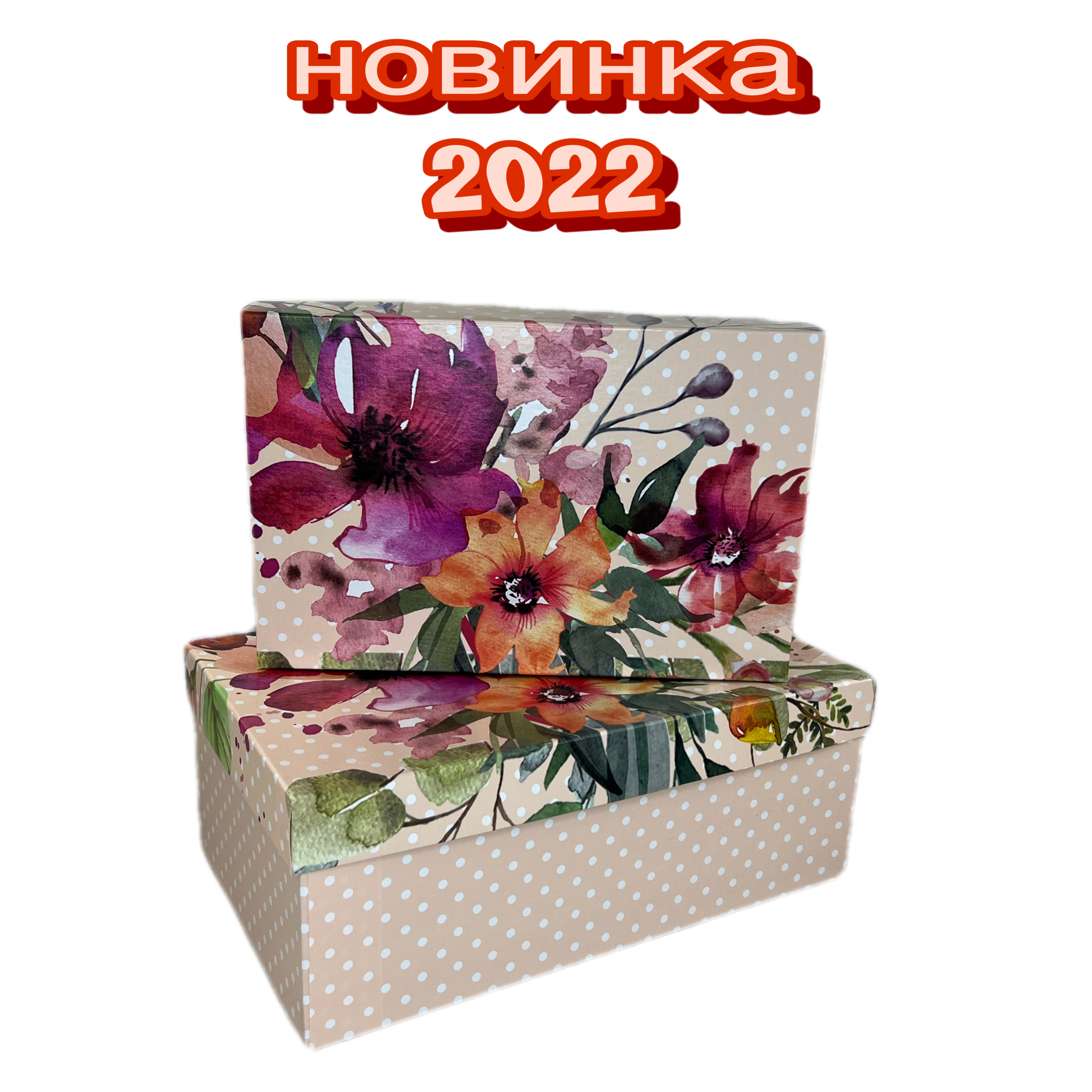 Набор картонных коробок 2в1, Весенняя акворель /для подарка /подарочная упаковка
