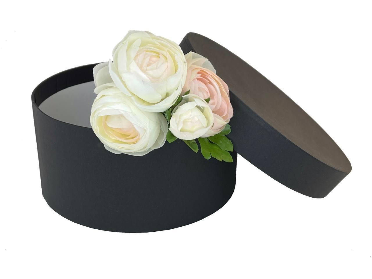 ,Картонная подарочная шляпная коробка с крышкой для цветов и подарков диаметр 20 см черный