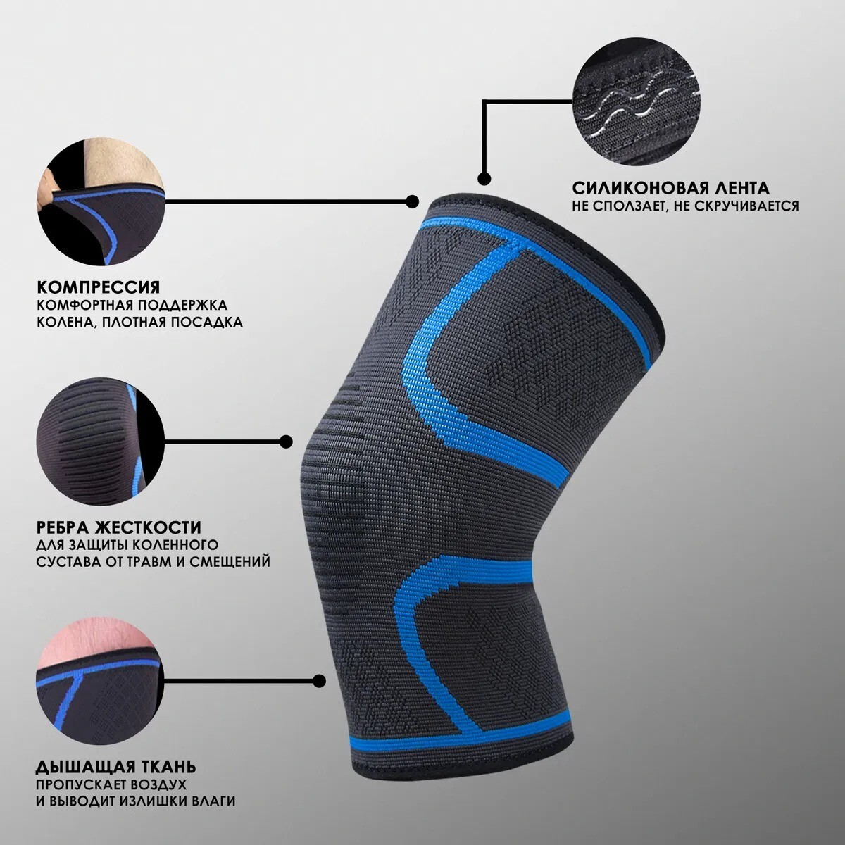 Спортивные эластичные наколенники, с синими линиями, размер L, Atlanterra AT-BNST2-17-L