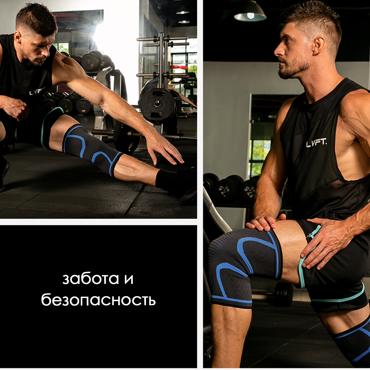 Спортивный эластичный наколенник, с синими линиями, размер XL