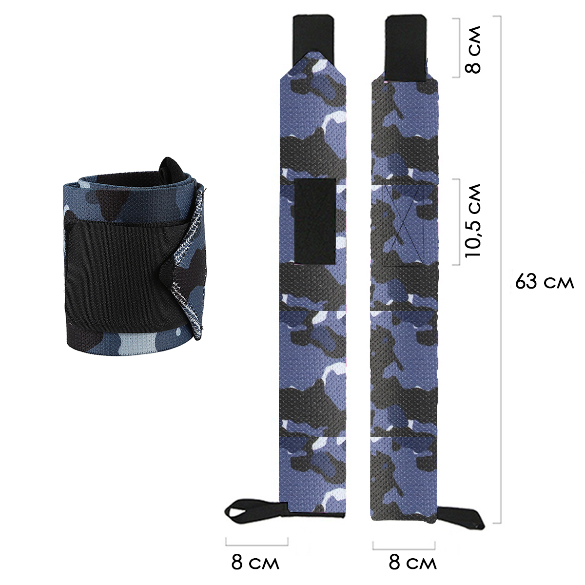 Эластичная повязка на запястья для фитнеса Камуфляж, кистевой бинт, 2 шт, темно-синий, 7,7х63 см
