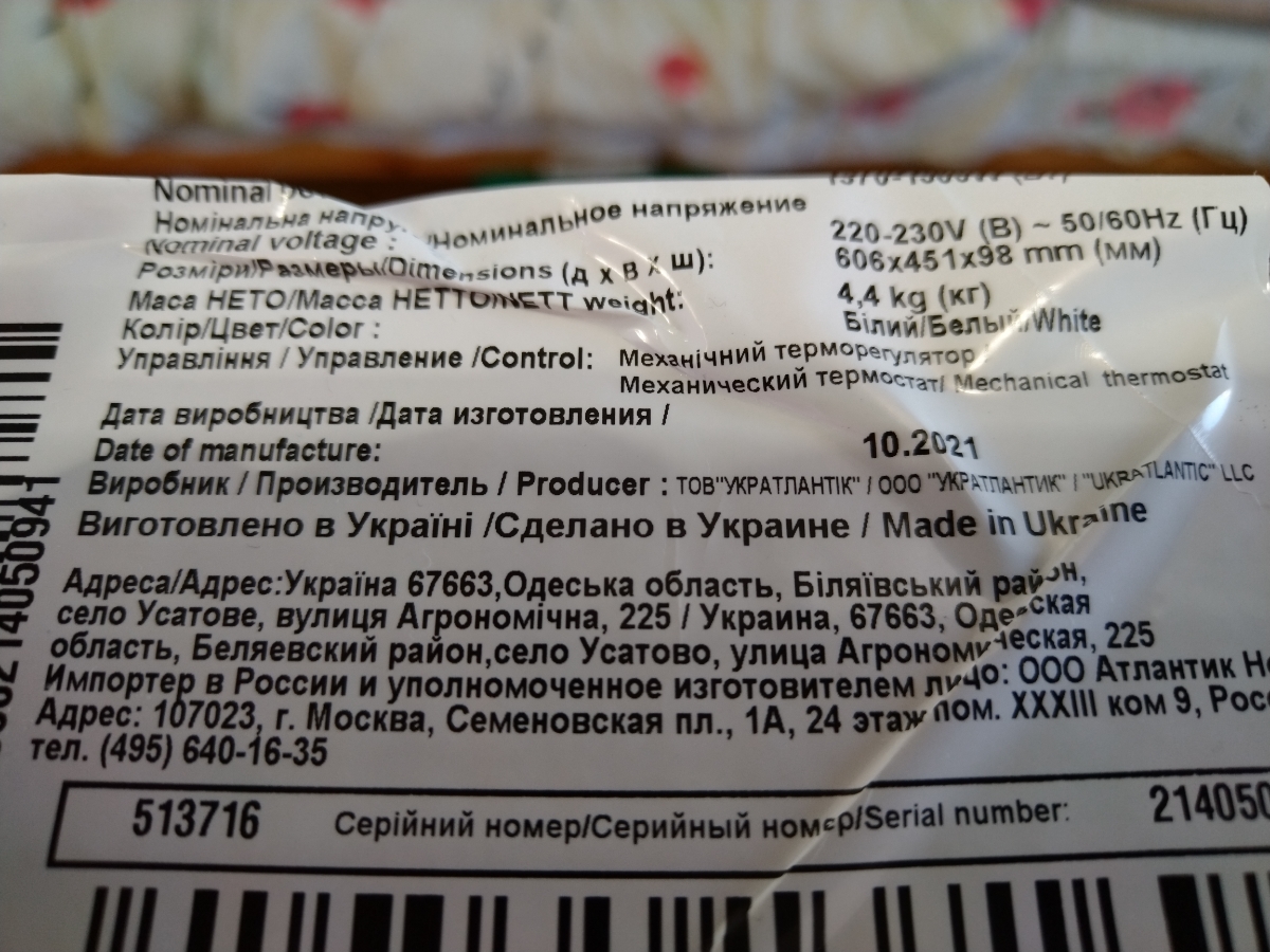 Электрический конвектор Atlantic F125 Design 2000W
