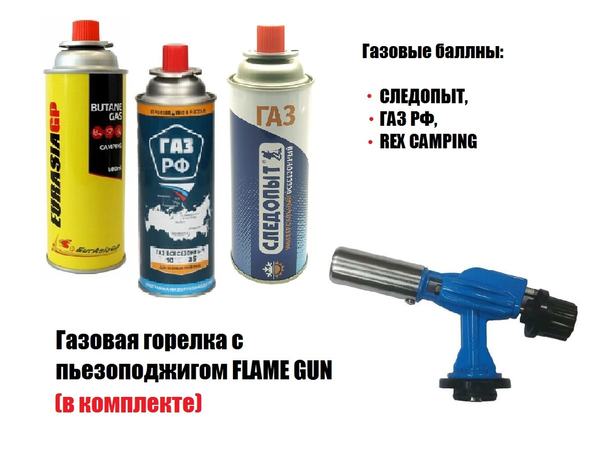 Баллон для газов (набор) СЛЕДОПЫТ, ГАЗ РФ, REX CAMPING с пьезо горелкой FLAME GUN