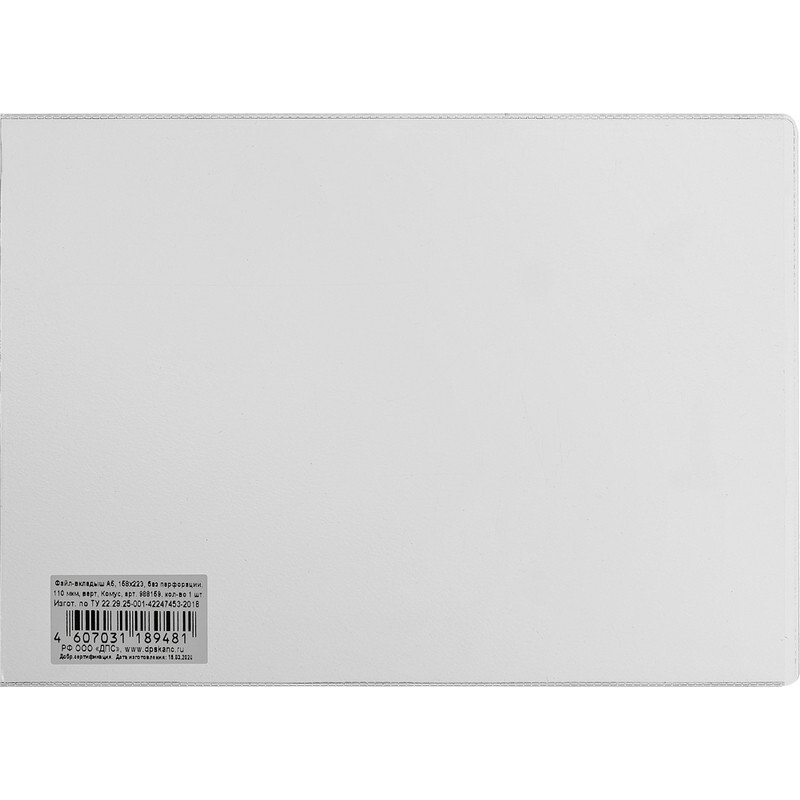 Файл-вкладыш А5 158x223 без перфорации , 110 мкм, верт. 3127.К
