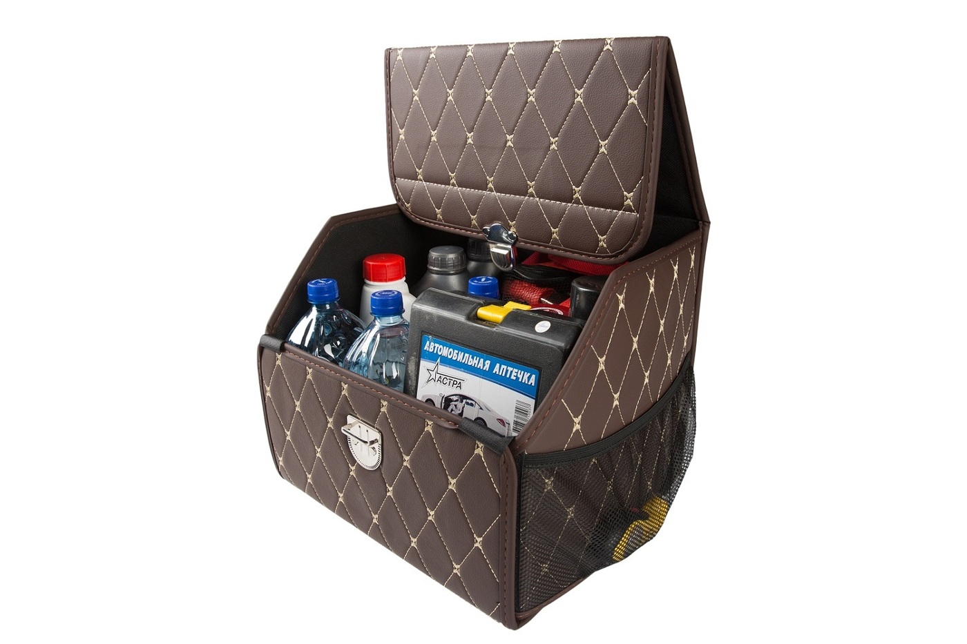 Сумка органайзер в багажник автомобиля AutoExpert S-Brown, цвет: коричневый, размер: 350х320х300мм.