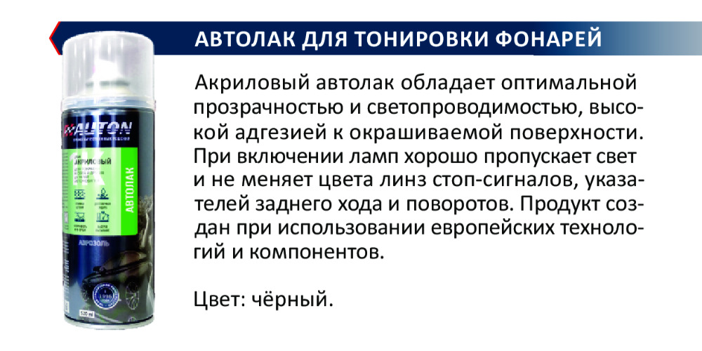 AUTON, Лак для тонировки фонарей, черный, баллон аэрозоль 520 мл