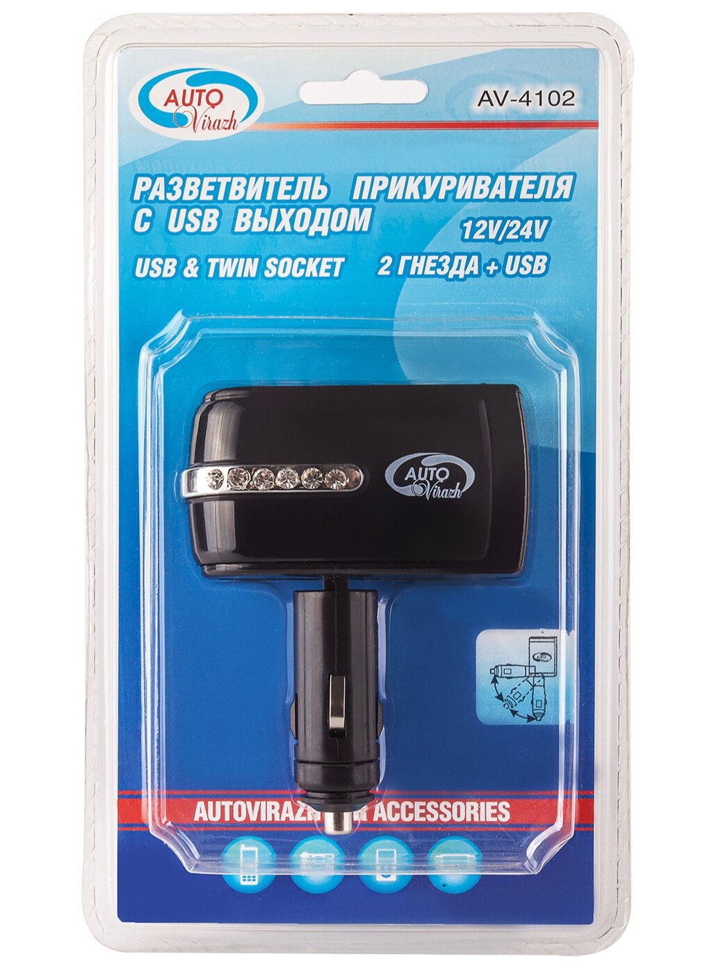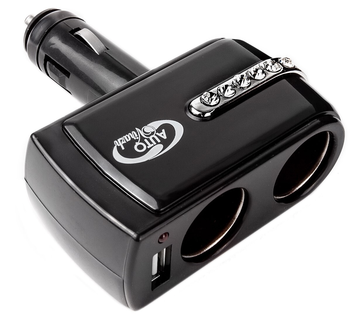 Разветвитель прикуривателя 2-ой +1 выход USB со стразами "AUTOVIRAZH"жёст., шт