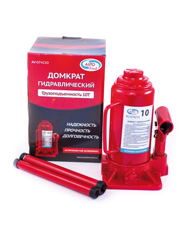 Домкрат автомобильный Бутылочный Гидравлический AUTOVIRAZH AV-074210, 10 т.
