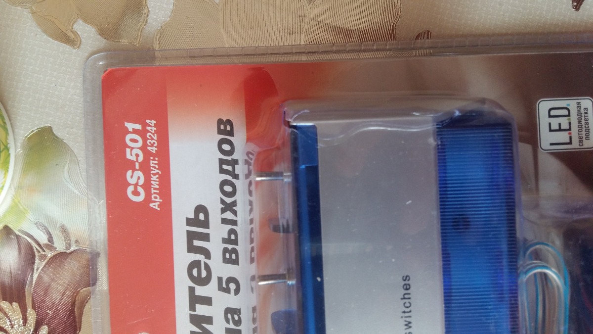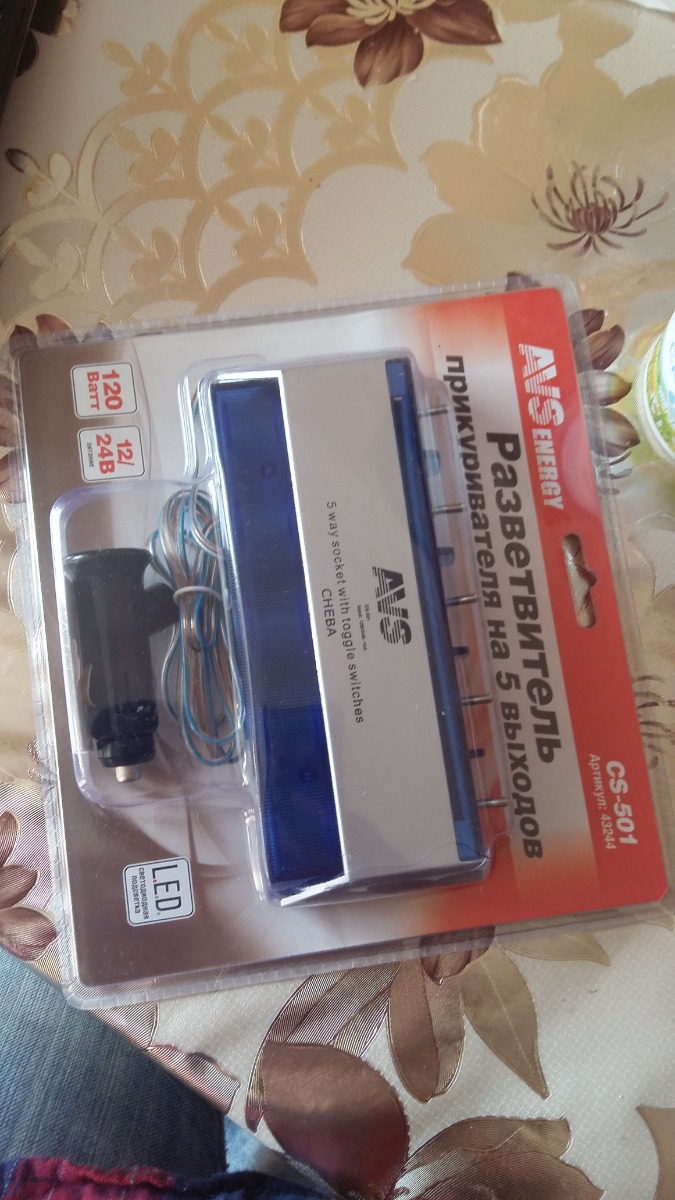 Разветвитель прикуривателя AVS "CS501", со светодиодной подсветкой, 5 выходов, 12/24В