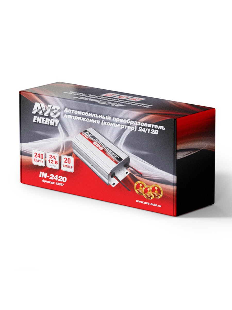 Конвертер, автомобильный преобразователь напряжения 24/12V AVS IN-2420 (20A) 43897