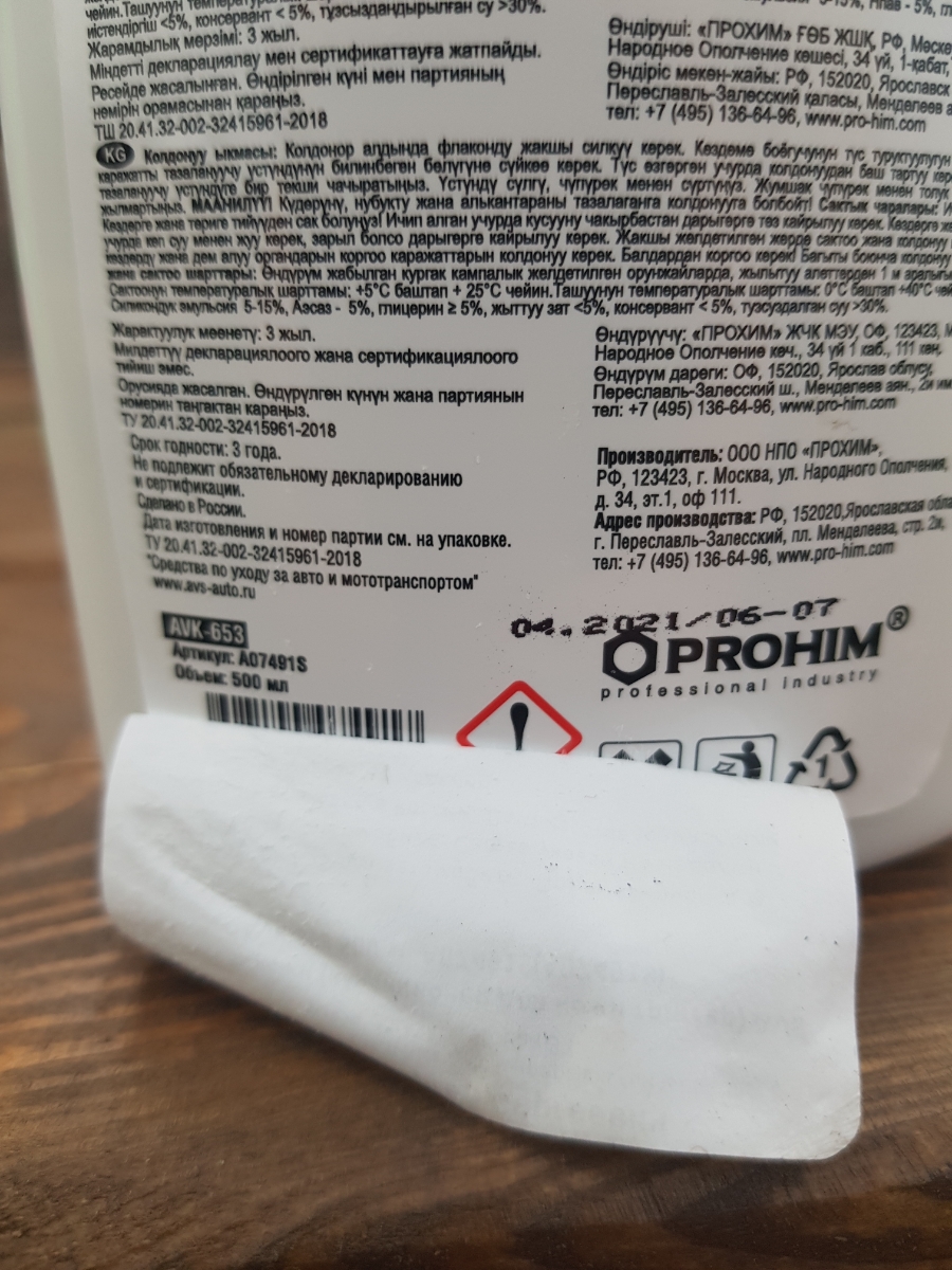 Очиститель кожи (кондиционер для кожи триггер) AVS AVK-653 500 мл. A07491S