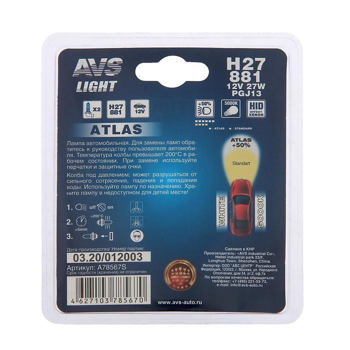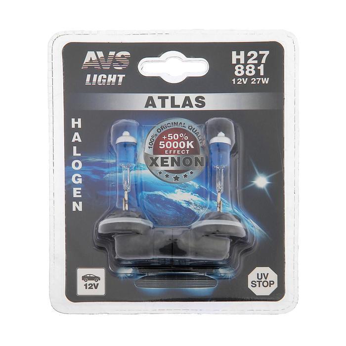 Лампа автомобильная AVS ATLAS, 5000К, H27/881 12V.27 Вт, набор 2 шт