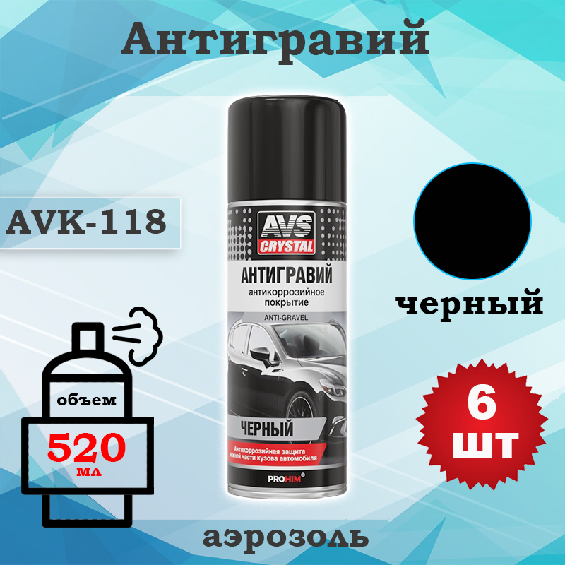 Антигравий "AVS" AVK-118, 520 мл, аэрозоль, черный, A78229S, 6 шт