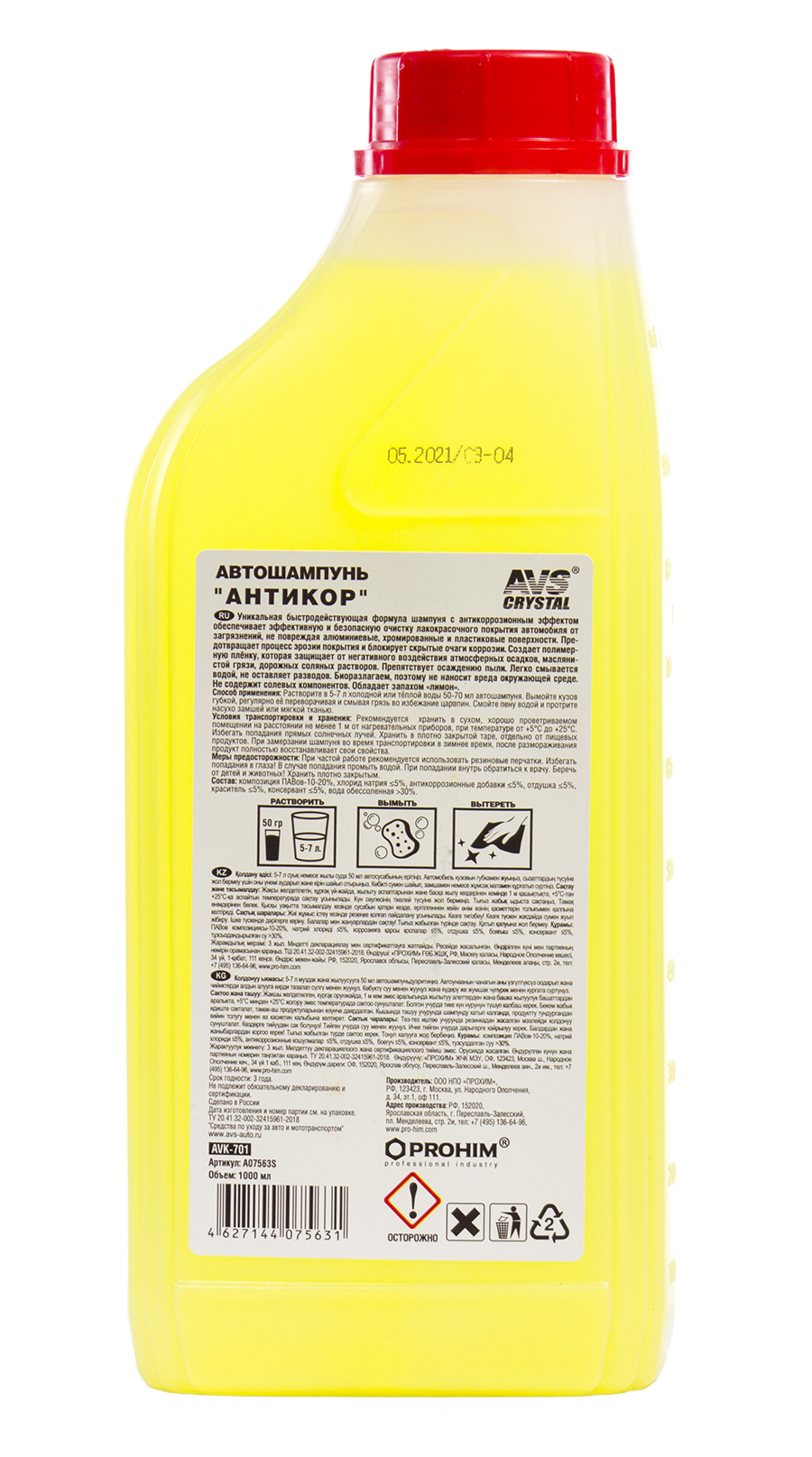 Автошампунь AVS для ручной мойки, антикор 1 л