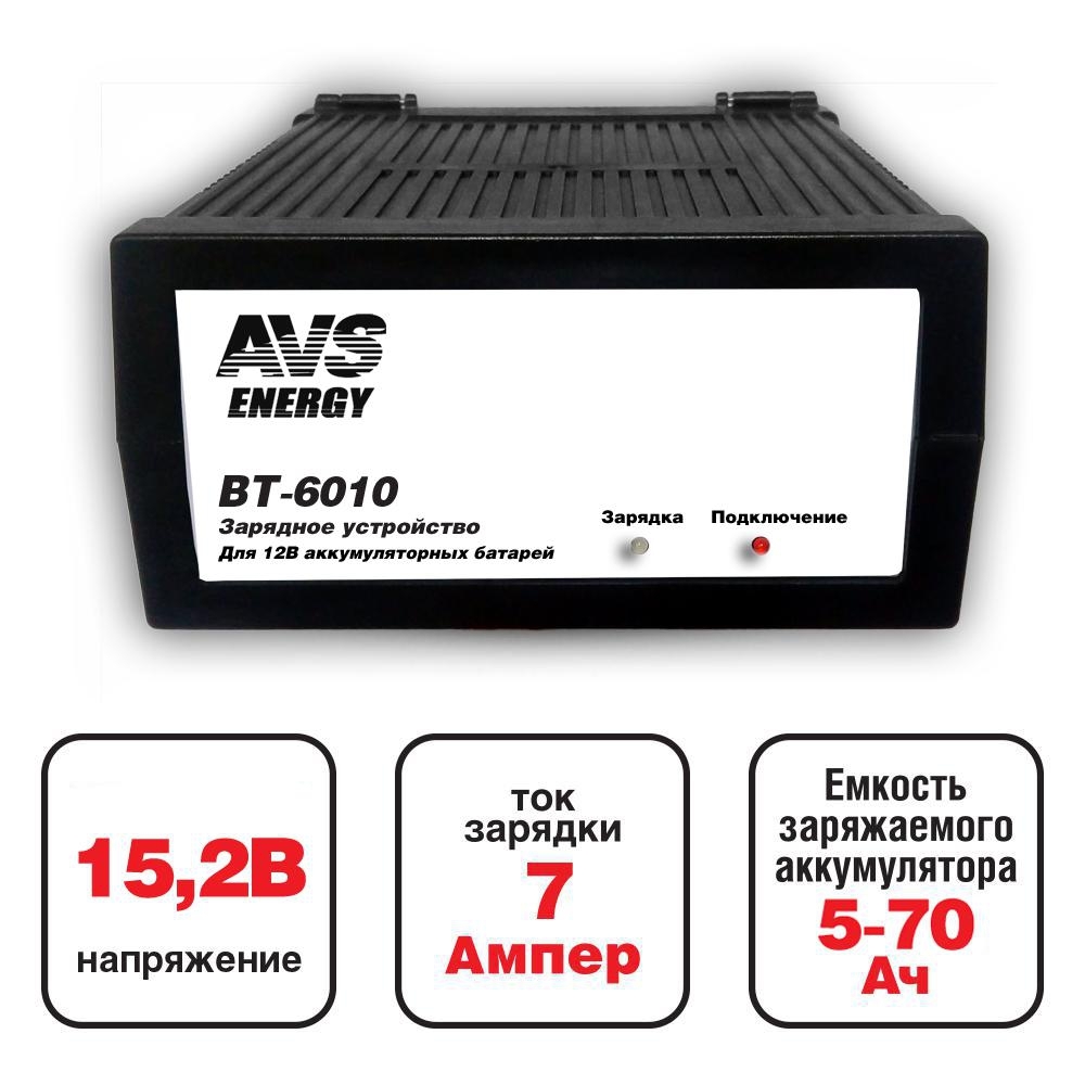 Зарядное устройство для автомобильного аккумулятора AVS BT-6010 (7A) 12V