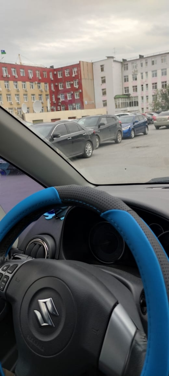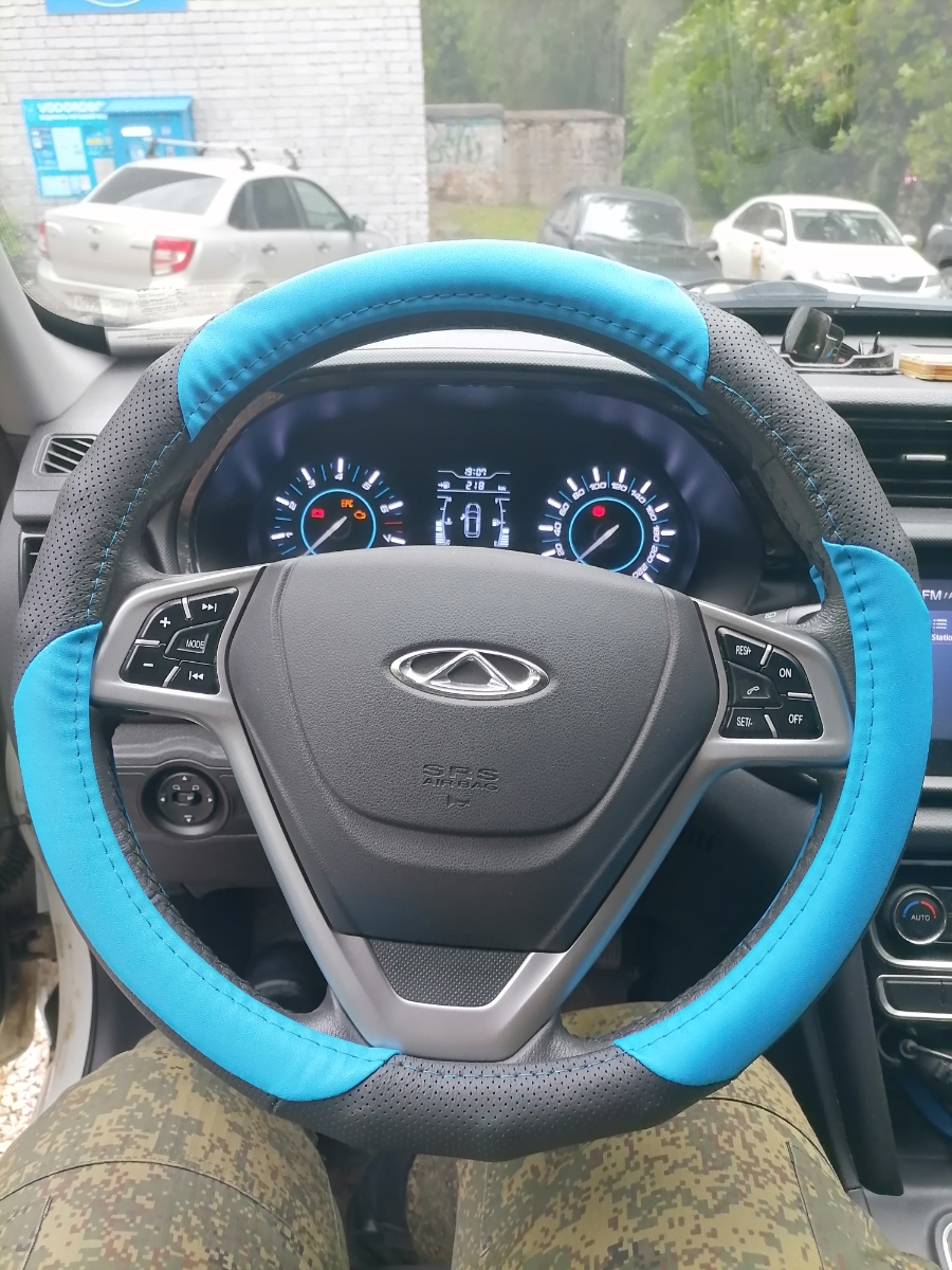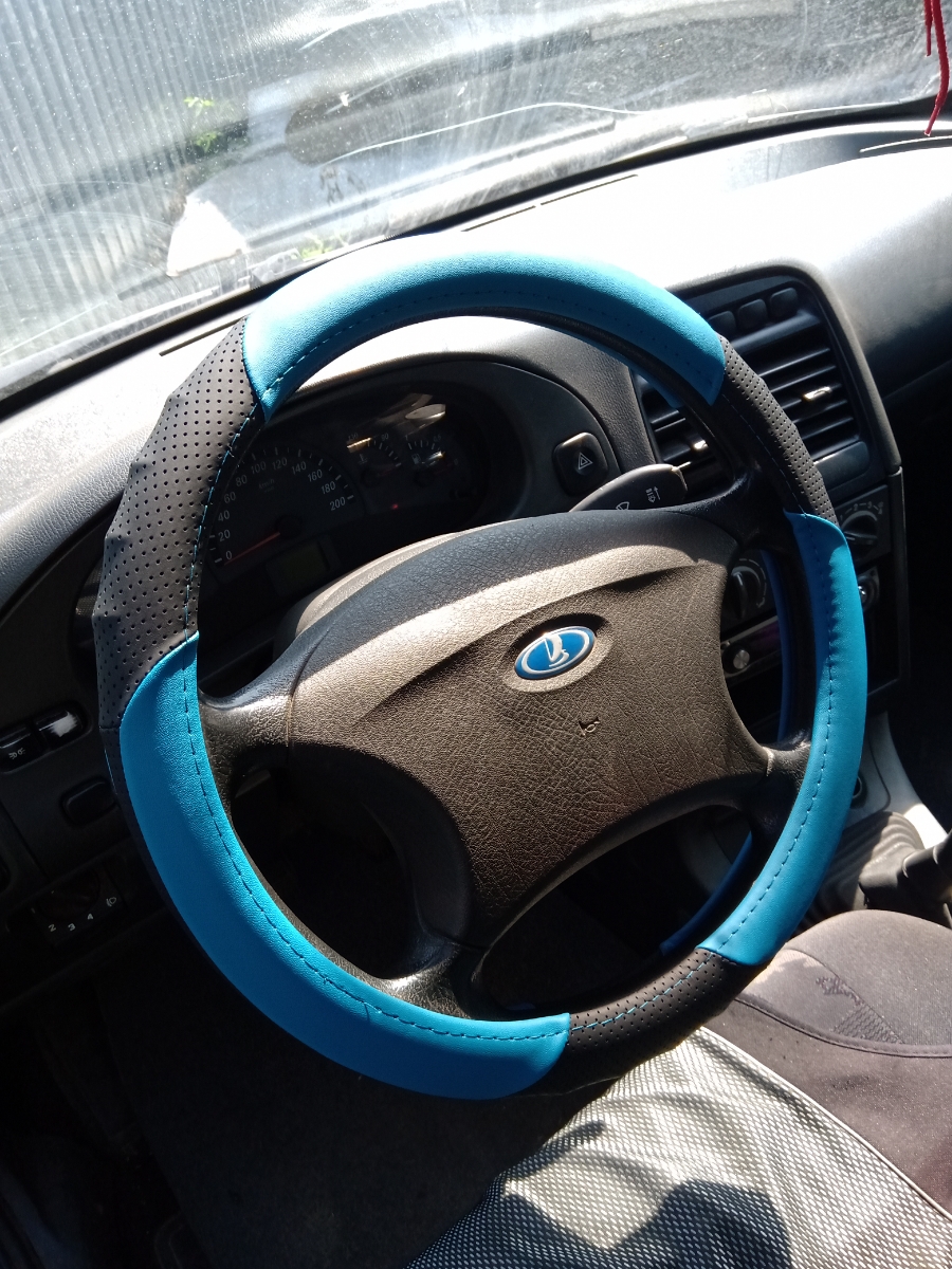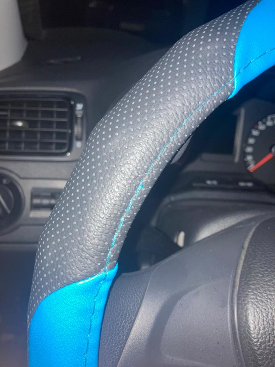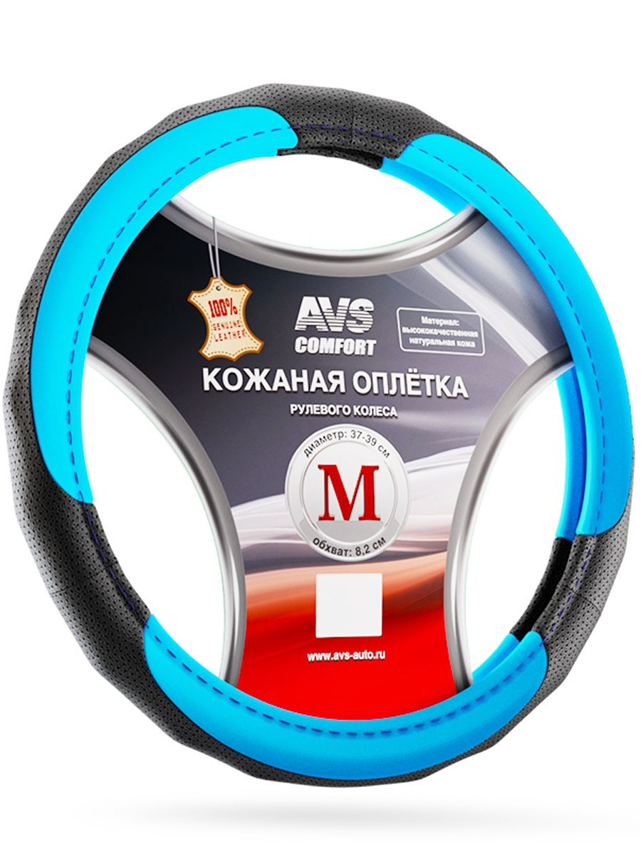 Оплетка на руль из натуральной кожи AVS 910M-LBL размер M, ярко-голубой (чехол на руль) A07520S