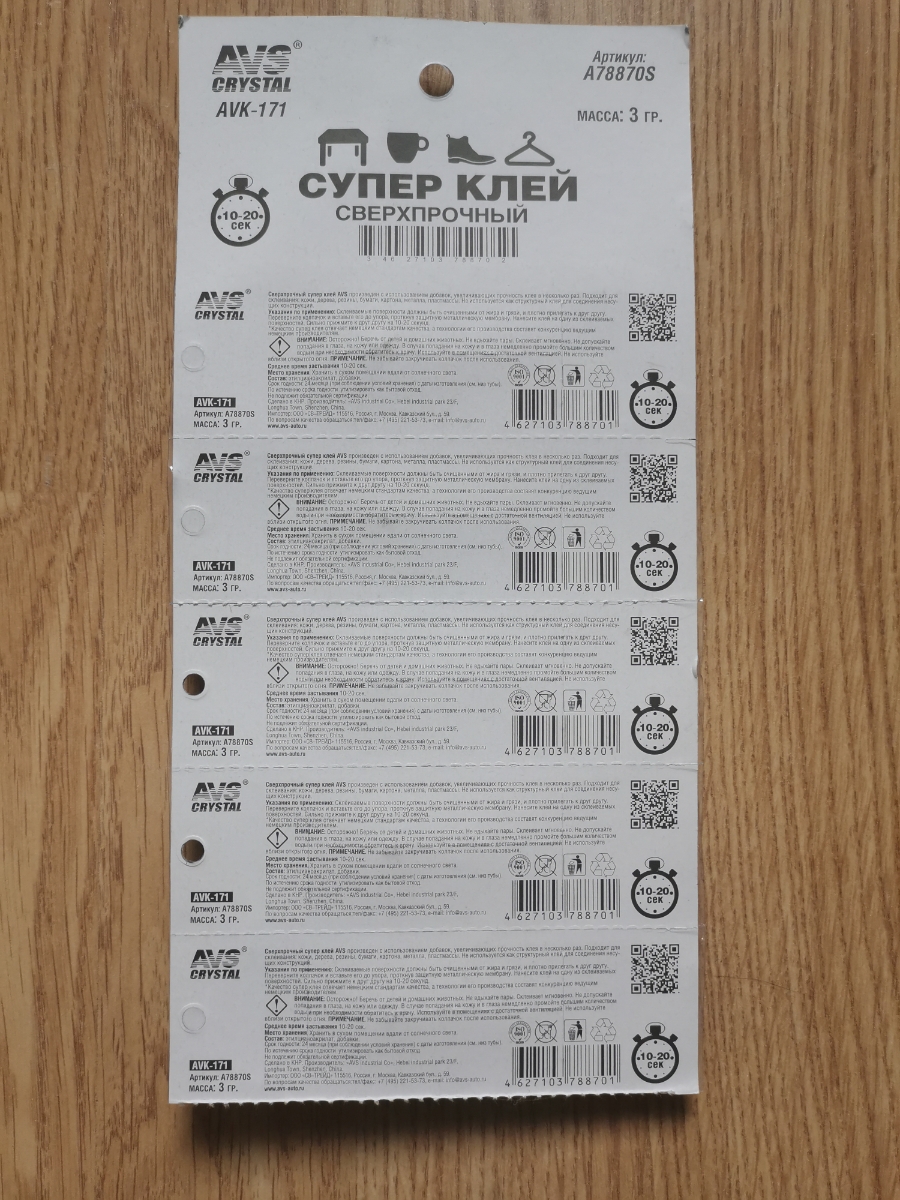Супер клей AVS CRYSTAL AVK-171 SUPER GLUE сверхпрочный 3 гр. Комплект из 24 шт. A78870S
