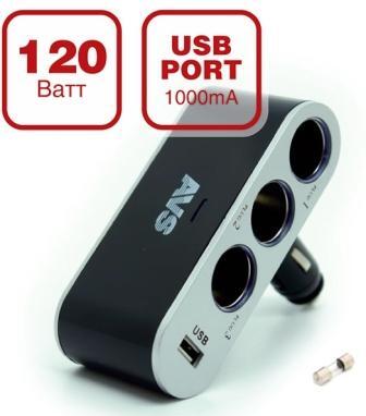 Разветвитель в прикуриватель "AVS" (3 гнезда+USB CS312U), 43265 (1 шт.)