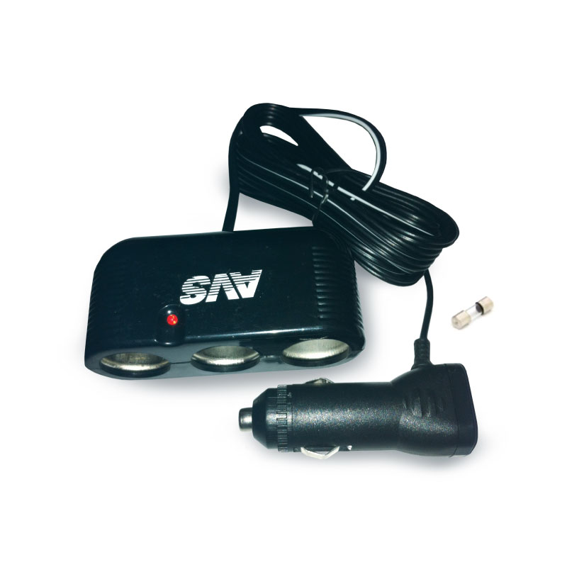Разветвитель прикуривателя AVS "CS301", со светодиодной подсветкой, 3 выхода, 12/24В