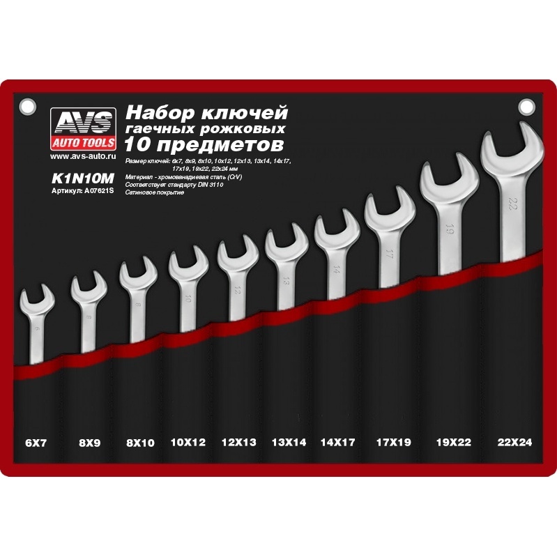 Набор ключей рожковых AVS K1N10M A07621S в сумке 6-24 мм 10 пр