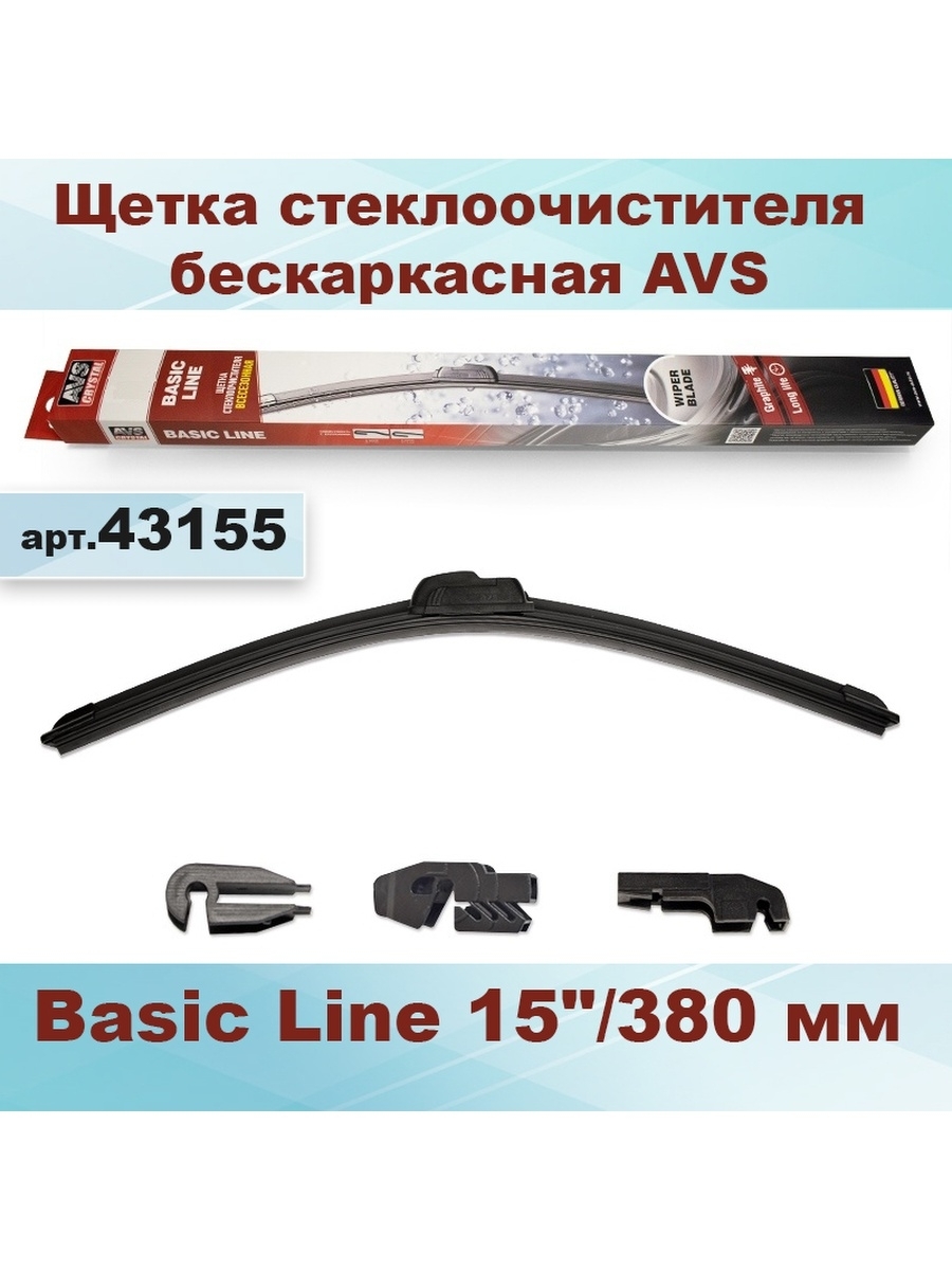 Щетка стеклоочистителя бескаркасная AVS 15"/380 мм Basic Line 43155