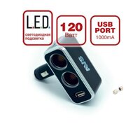 Разветвитель прикуривателя 12/24V (на 2 выхода + USB) AVS CS211U / 43254