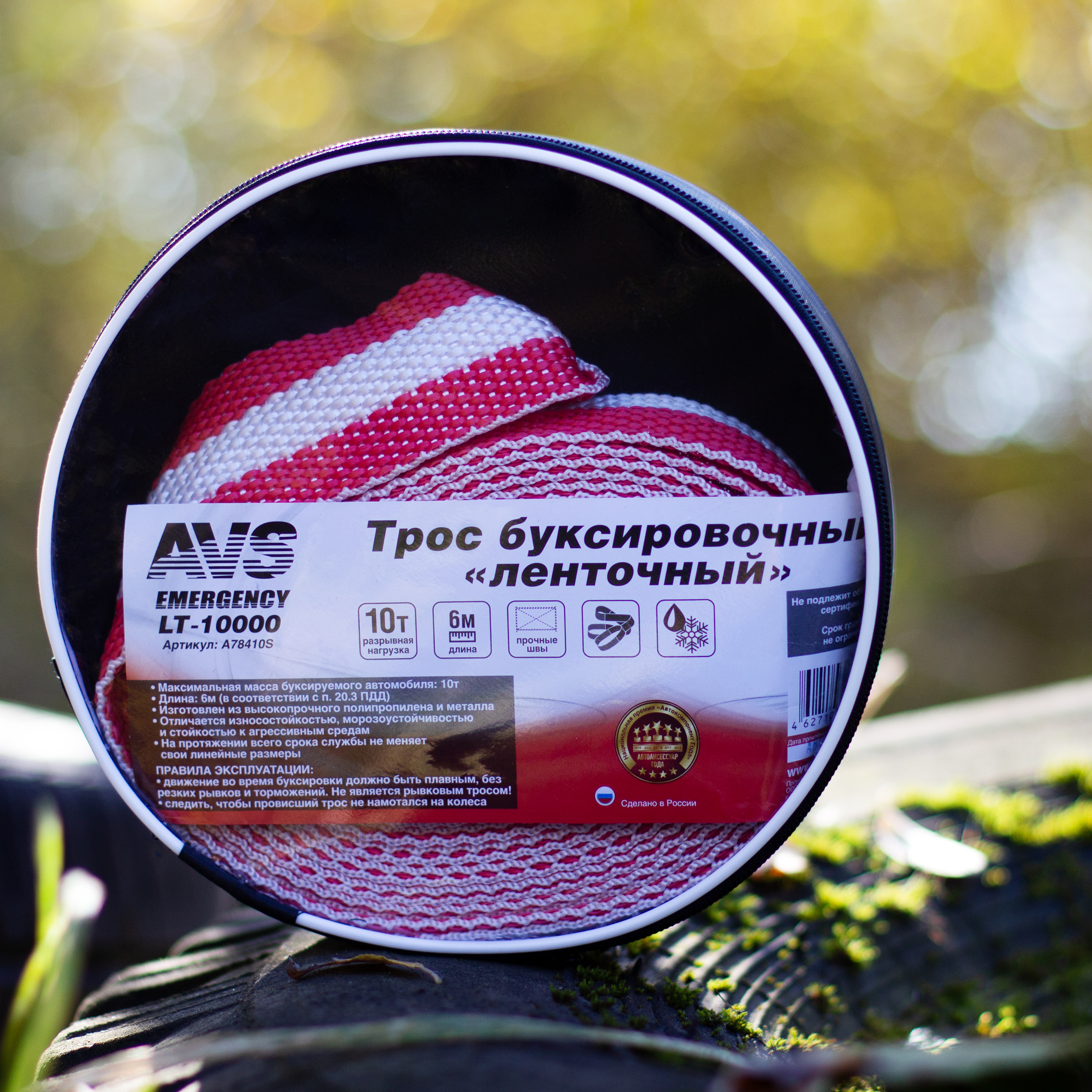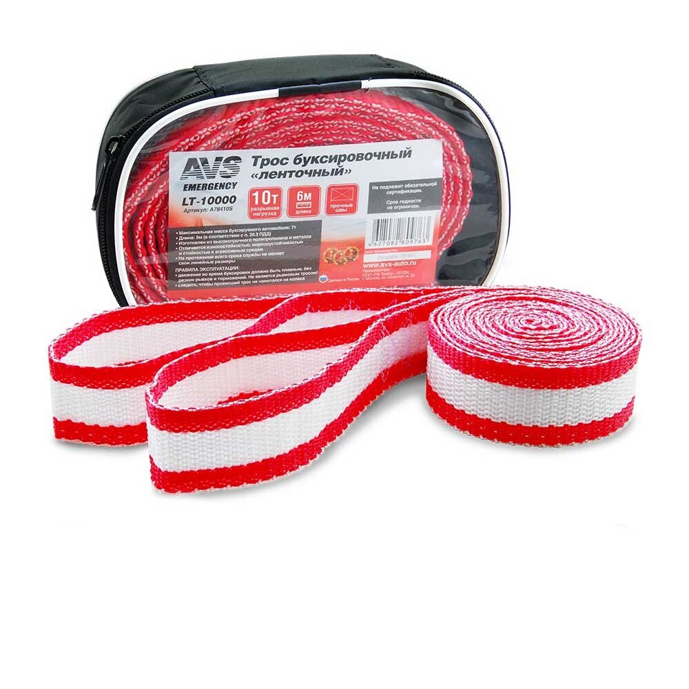 Трос для буксировки автомобиля AVS лента 10 тонн 6 метров LT-10000, в сумке A78410S