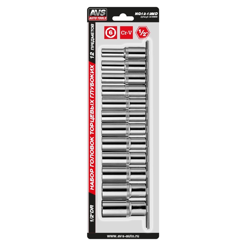 Набор головок торцевых 1/2"DR (10-24 мм) (12 предметов) глубокие на держателе AVS NG12-12MD