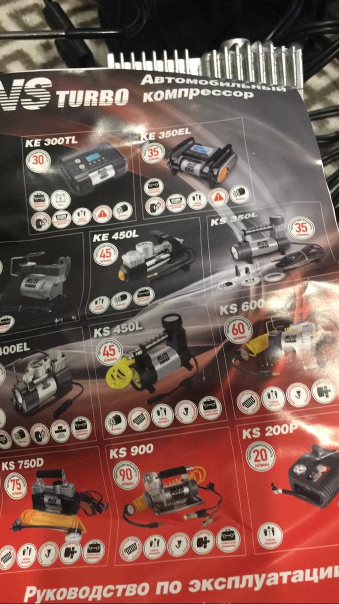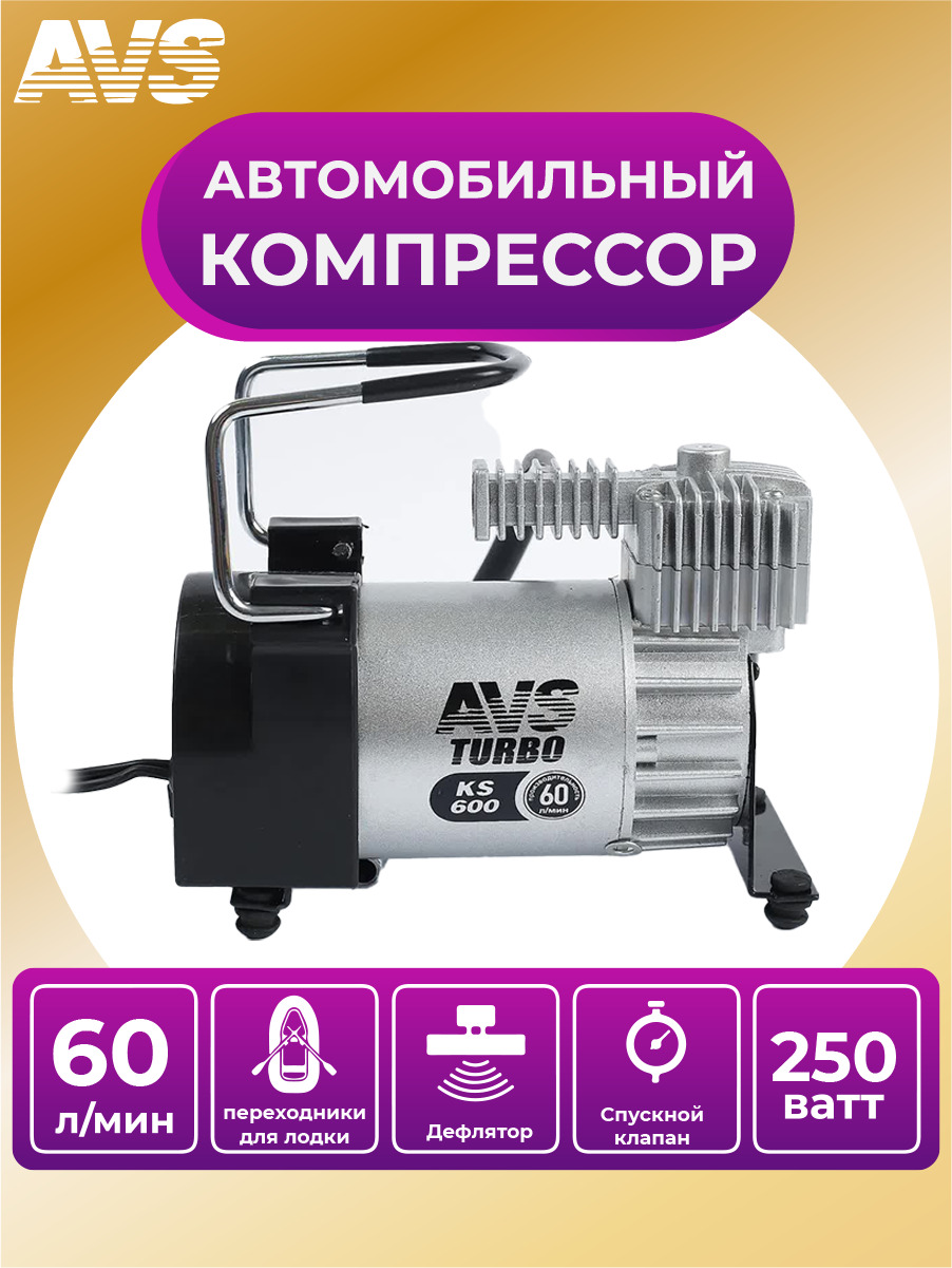 Компрессор автомобильный AVS KS600 (12B, 250Вт, 60Л/мин, 10Атм)
